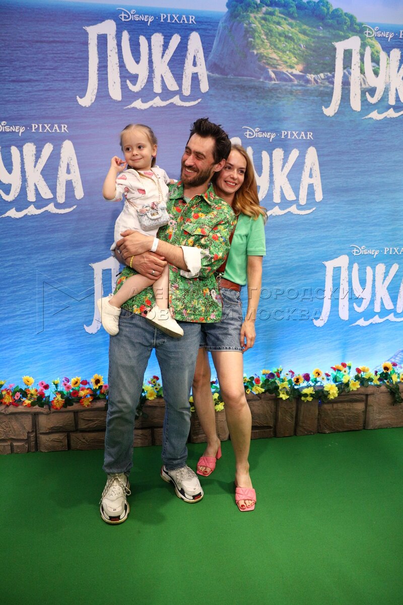 Актеры Дмитрий Чеботарев и Елизавета Климова и их дочь Иванна во время премьеры а...