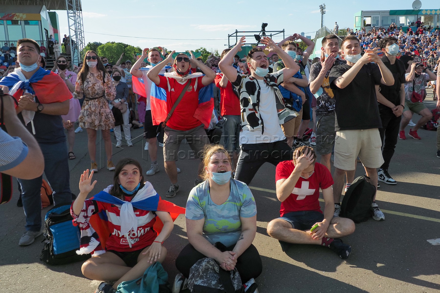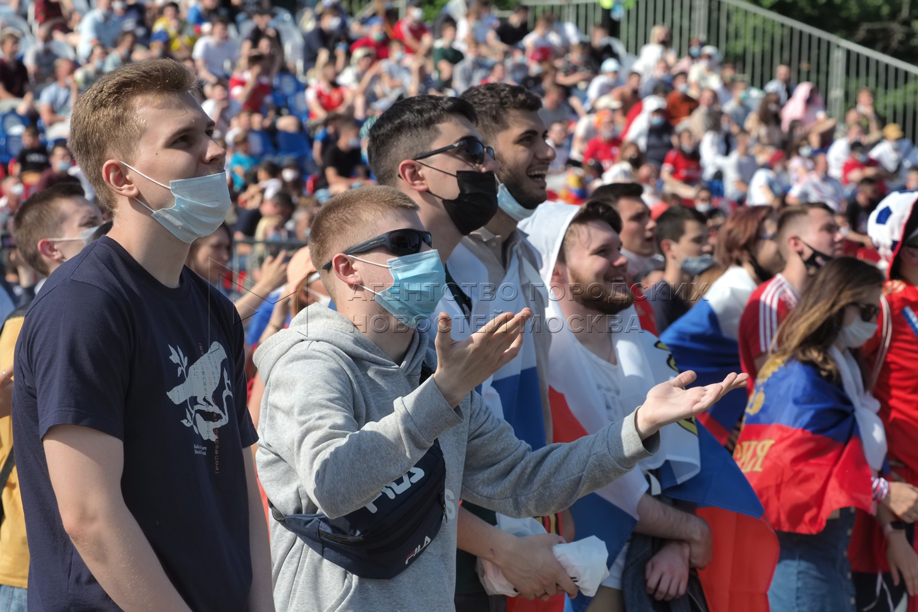 • Заголовок: Болельщики в фан-зоне в «Лужниках» во время футбольного матча Евро-2020 между Россией и Финляндией
