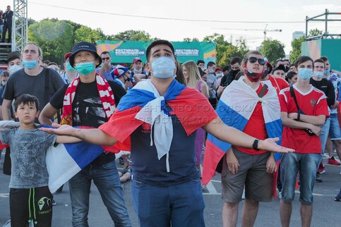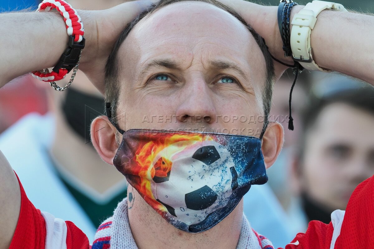 Болельщики в фан-зоне на площади Южного спортивного центра в «Лужниках» во время ...