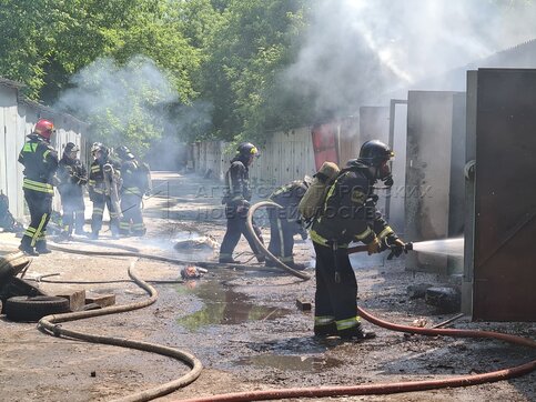 Ликвидация возгорания на площади 200 кв. м в гаражах по адресу: Варшавское шоссе,...
