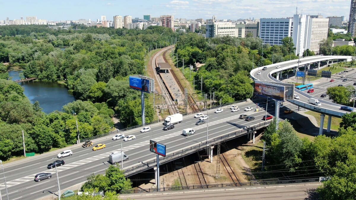 Вид с квадрокоптера на платформу «Покровское-Стрешнево» второго маршрута Московск...