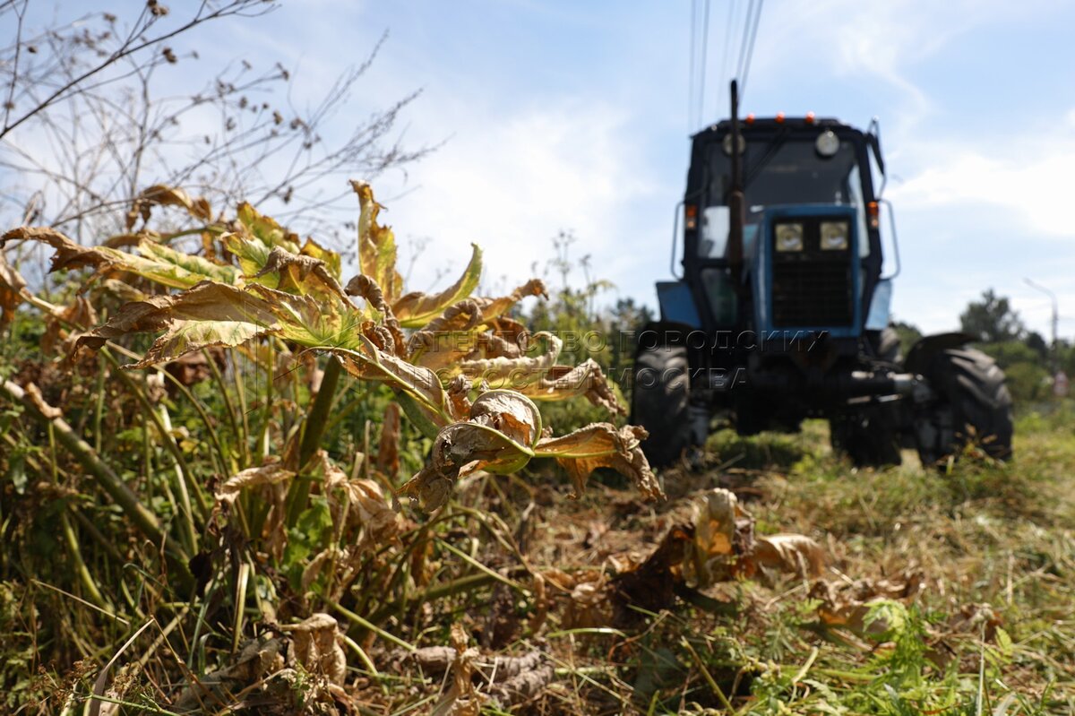 Уничтожение зарослей борщевика в Подмосковье.