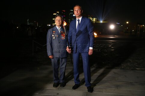Директор Музея Победы Александр Школьник и поэт-фронтовик Иван Гришанов во время ...