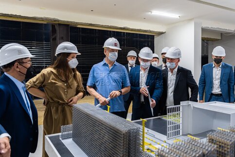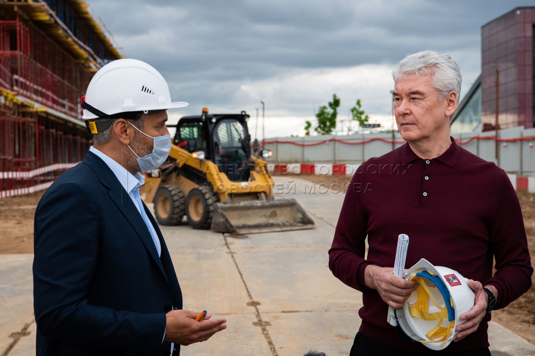 Мэр Москвы Сергей Собянин (в центре) осмотрел строящееся здание роботизированного...