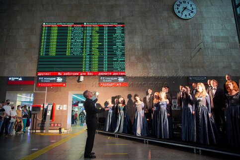 Музыкальный перформанс на Ленинградском вокзале, приуроченный к Международному фе...