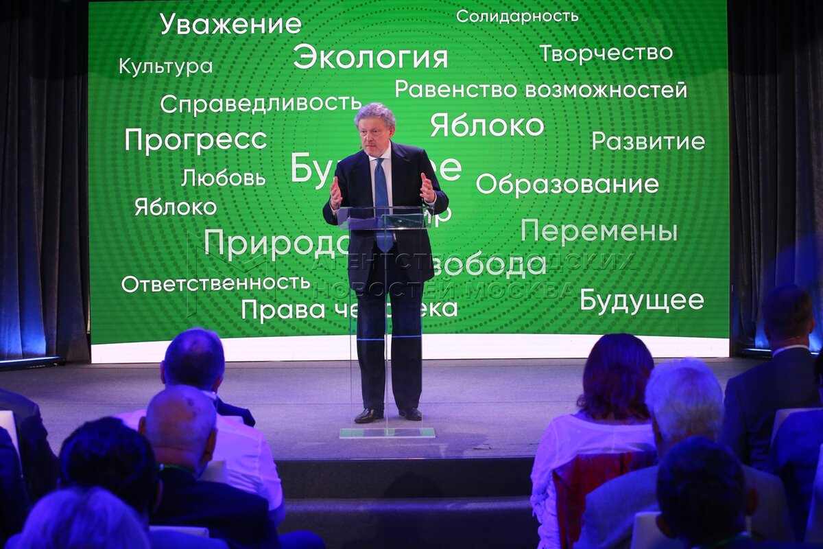 Председатель Федерального политического комитета партии «Яблоко» Григорий Явлинский во время съезда партии «Яблоко», на котором будут выдвинуты кандидаты в депутаты Государственной Думы.