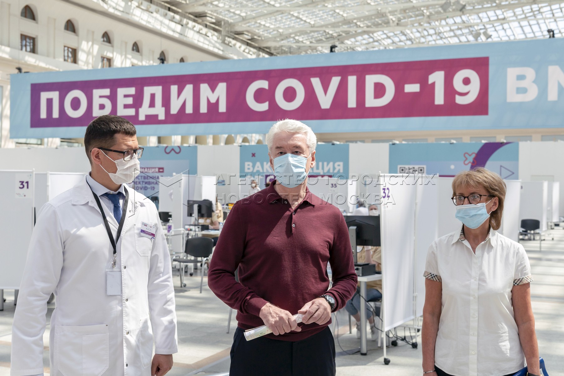 - Описание: Мэр Москвы Сергей Собянин открыл один из крупнейших пунктов вакцинации в Европе, который теперь находится в Гостином дворе. Фото: Владимир Новиков, пресс-служба мэра и правительства Москвы.
