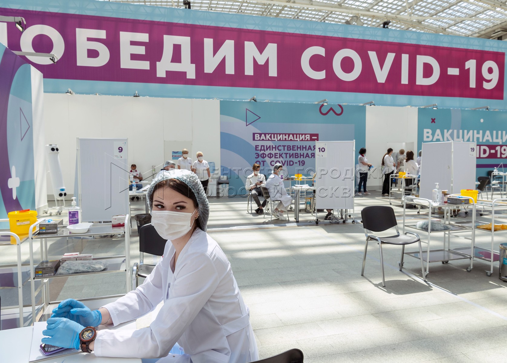 - Описание: Мэр Москвы Сергей Собянин открыл один из крупнейших пунктов вакцинации в Европе, который теперь находится в Гостином дворе. Фото: Владимир Новиков, пресс-служба мэра и правительства Москвы.