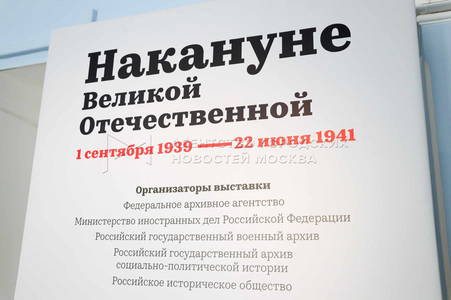 Показ историко-документальной выставки «Накануне Великой Отечественной. 1 сентября 1939 - 22 июня 1941» в Федеральном архивном агентстве.