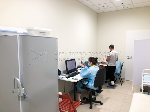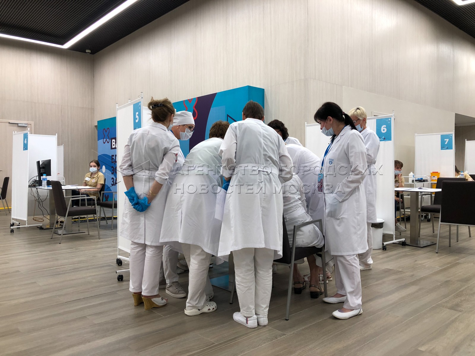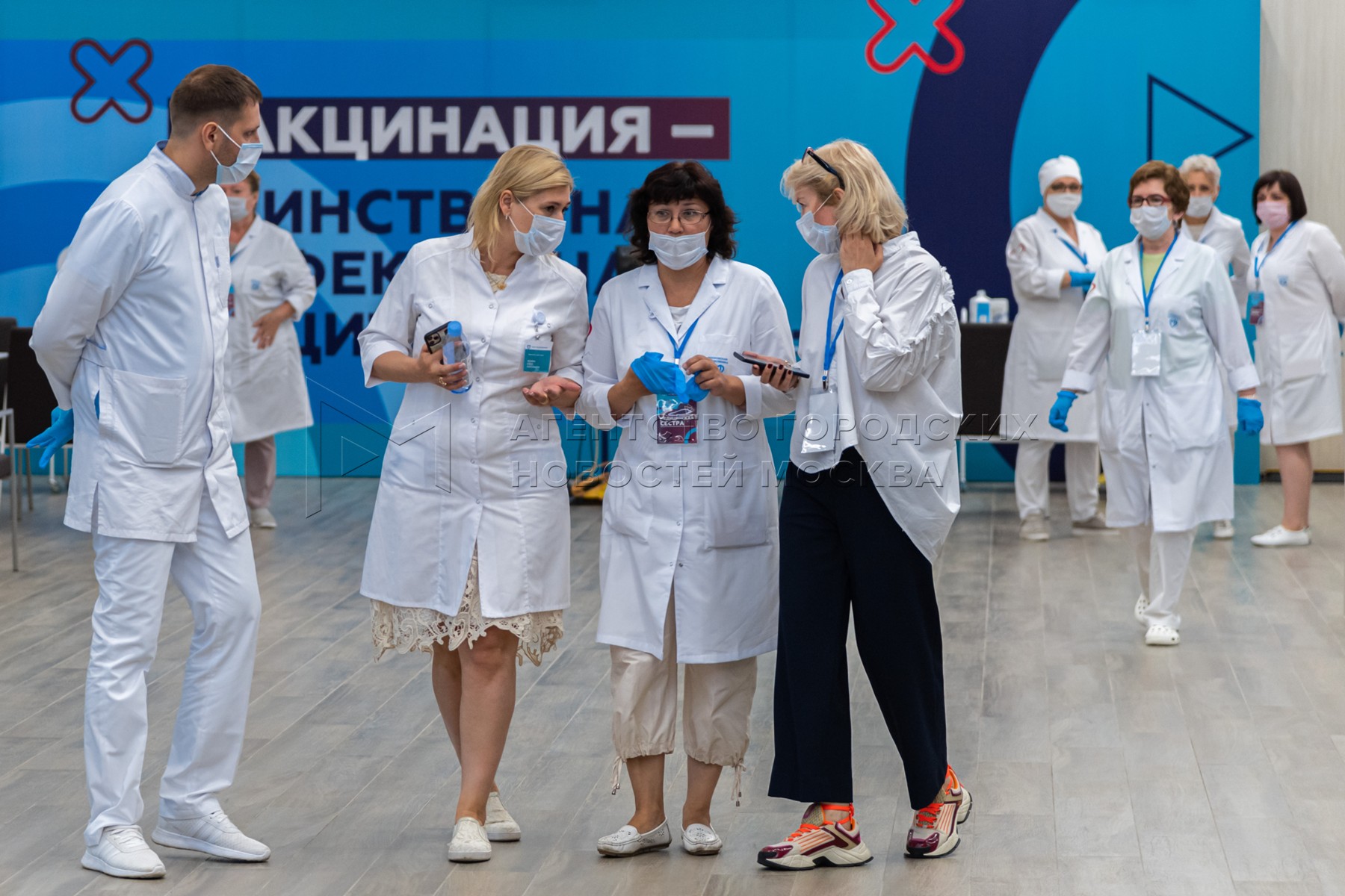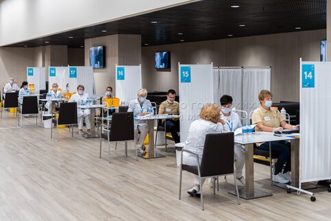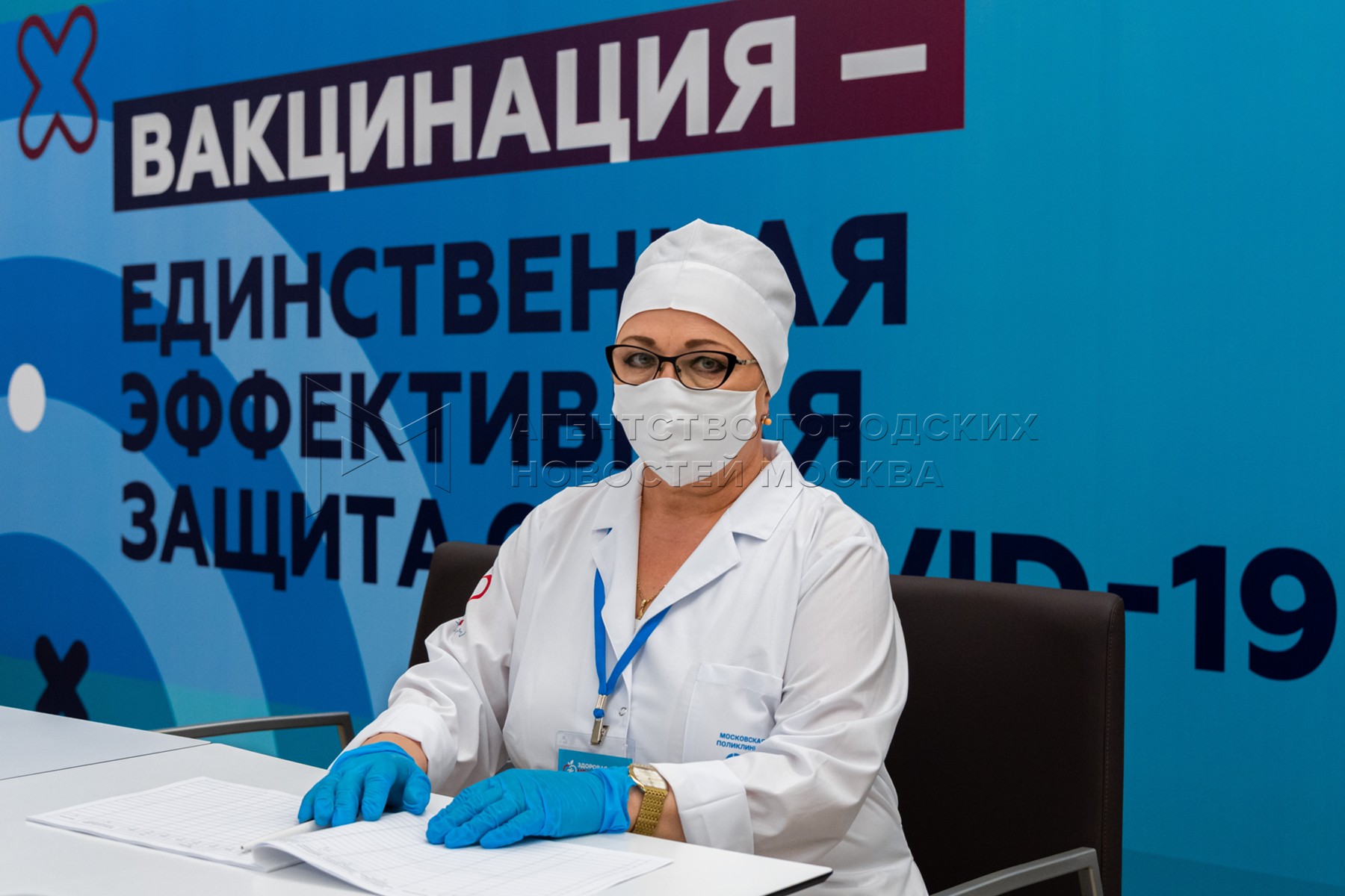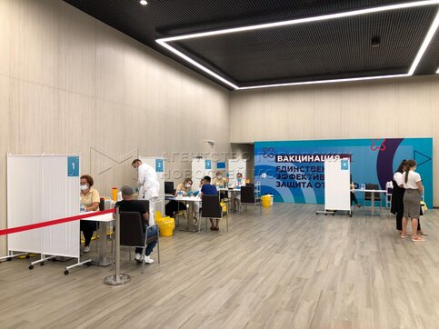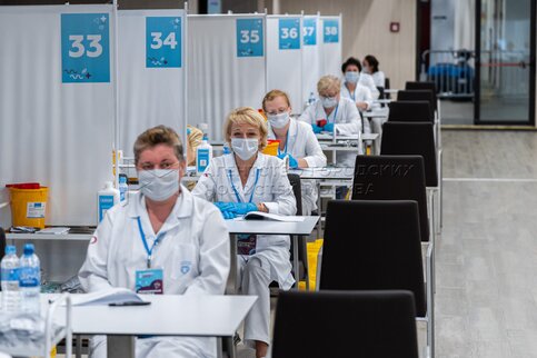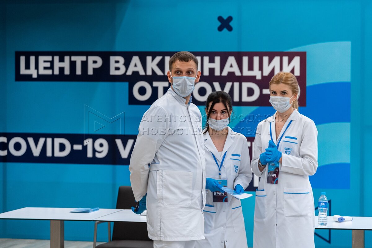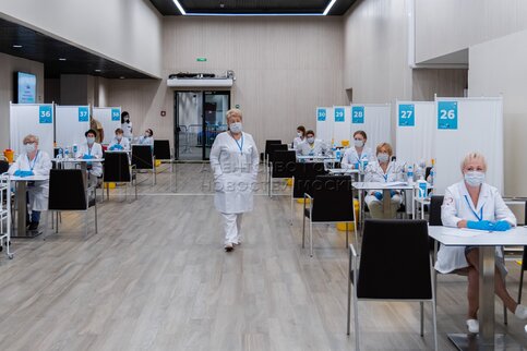 Открытие нового центра вакцинации от COVID-19 в олимпийском комплексе «Лужники». ...