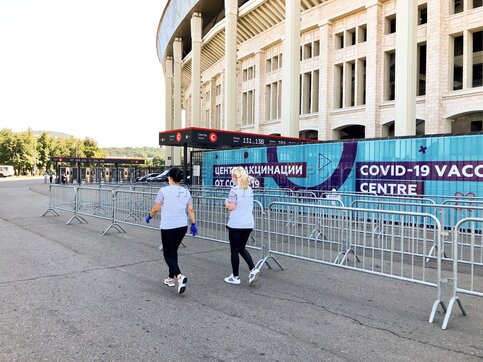 • Описание: Новый центр вакцинации от COVID-19 в олимпийском комплексе «Лужники».