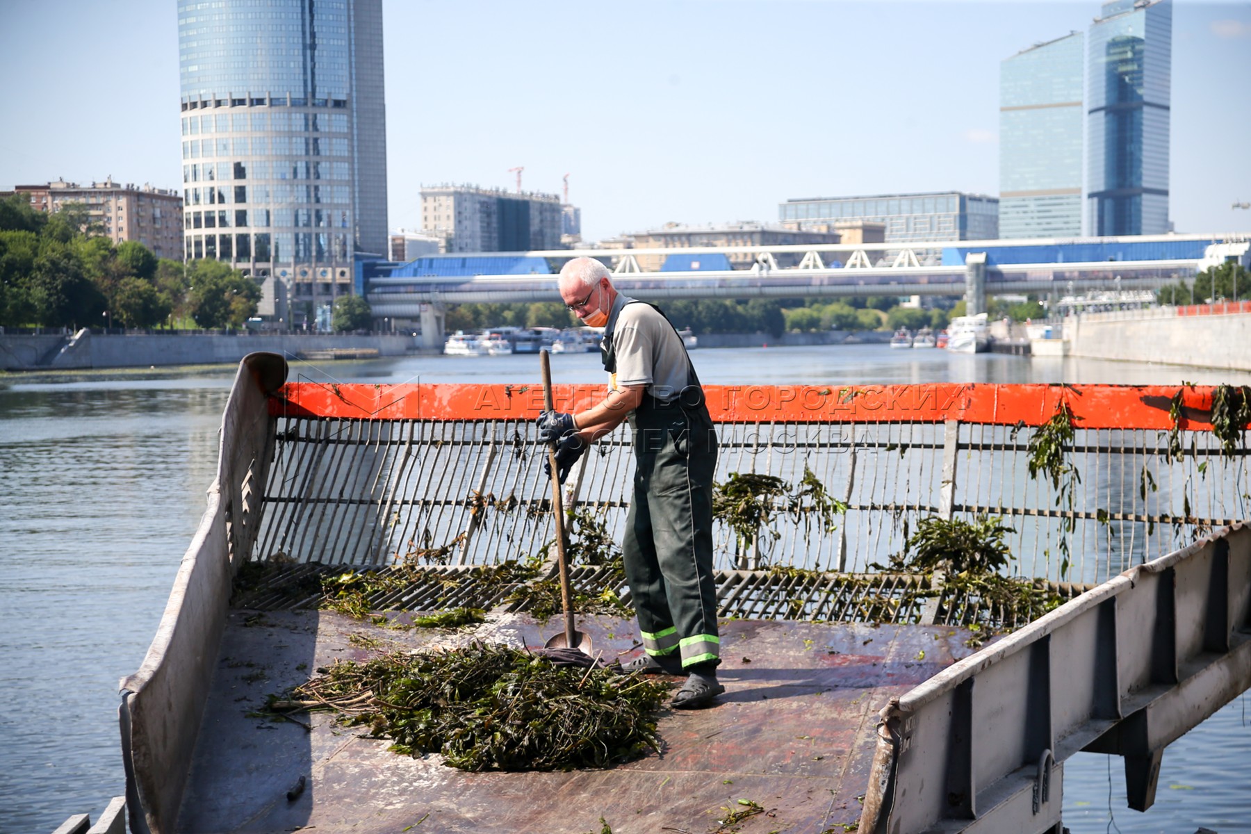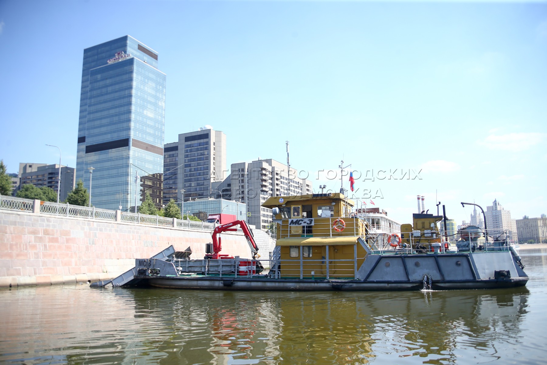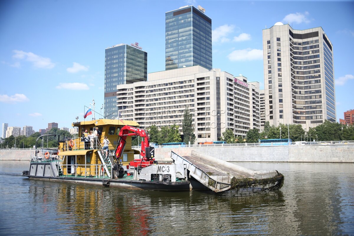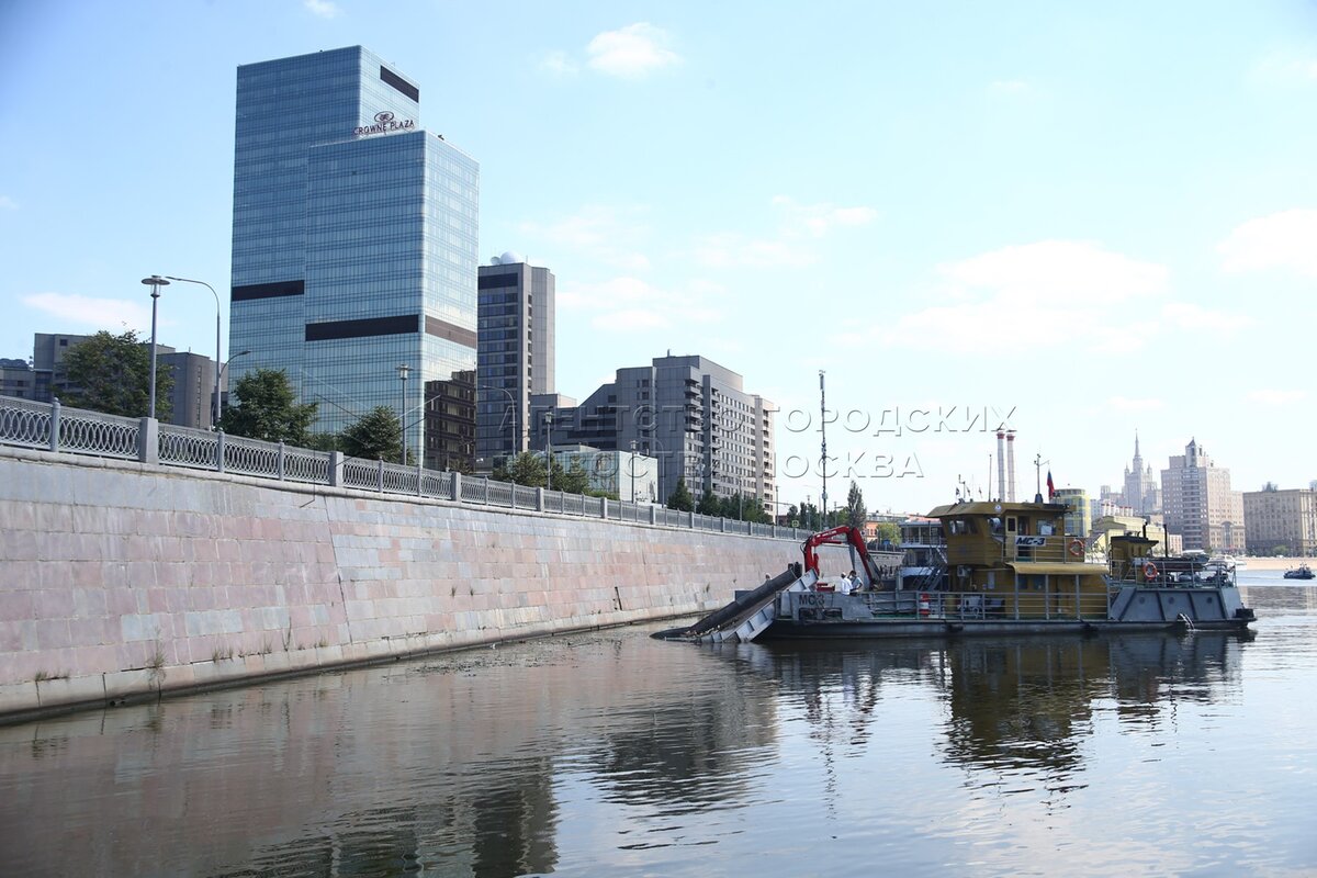 • Описание: Работы по очистке Москвы-реки сотрудниками ГУП «Мосводосток».