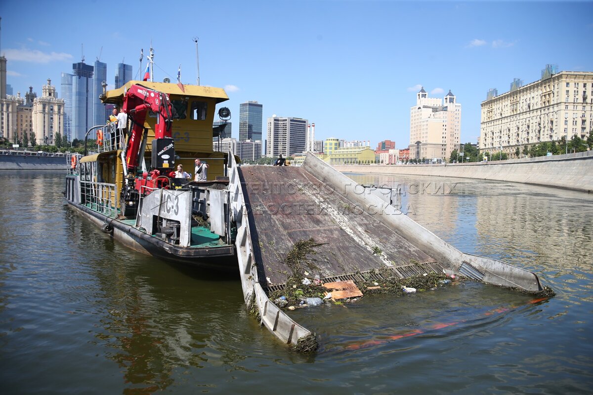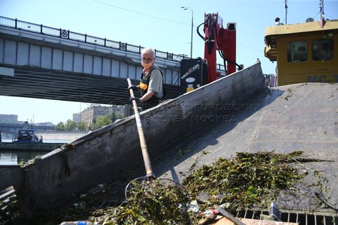 • Заголовок: Работы по очистке Москвы-реки сотрудниками Мосводостока