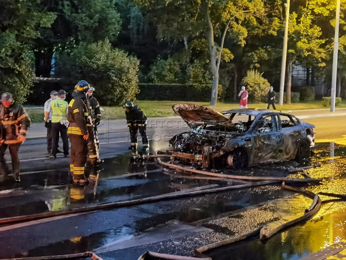 На ул. Большая Серпуховская загорелся автомобиль на проезжей части.