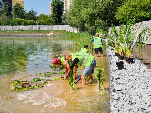 Завершение работ по благоустройству Ясного пруда в столичном районе Южное Медведк...