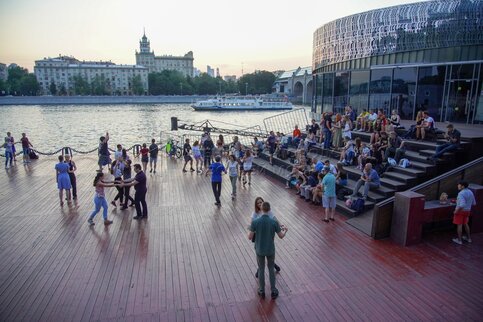 Вечерний отдых горожан на Пушкинской набережной. Танцевальная площадка.