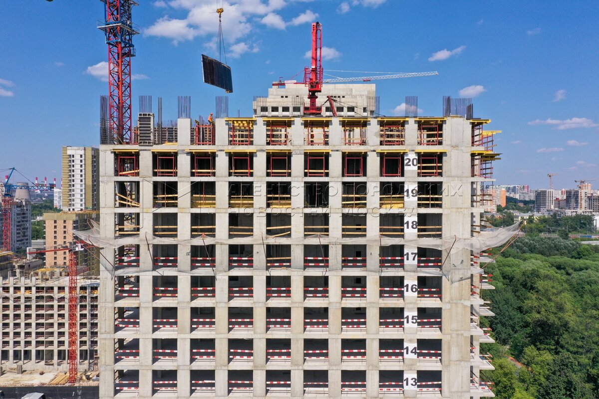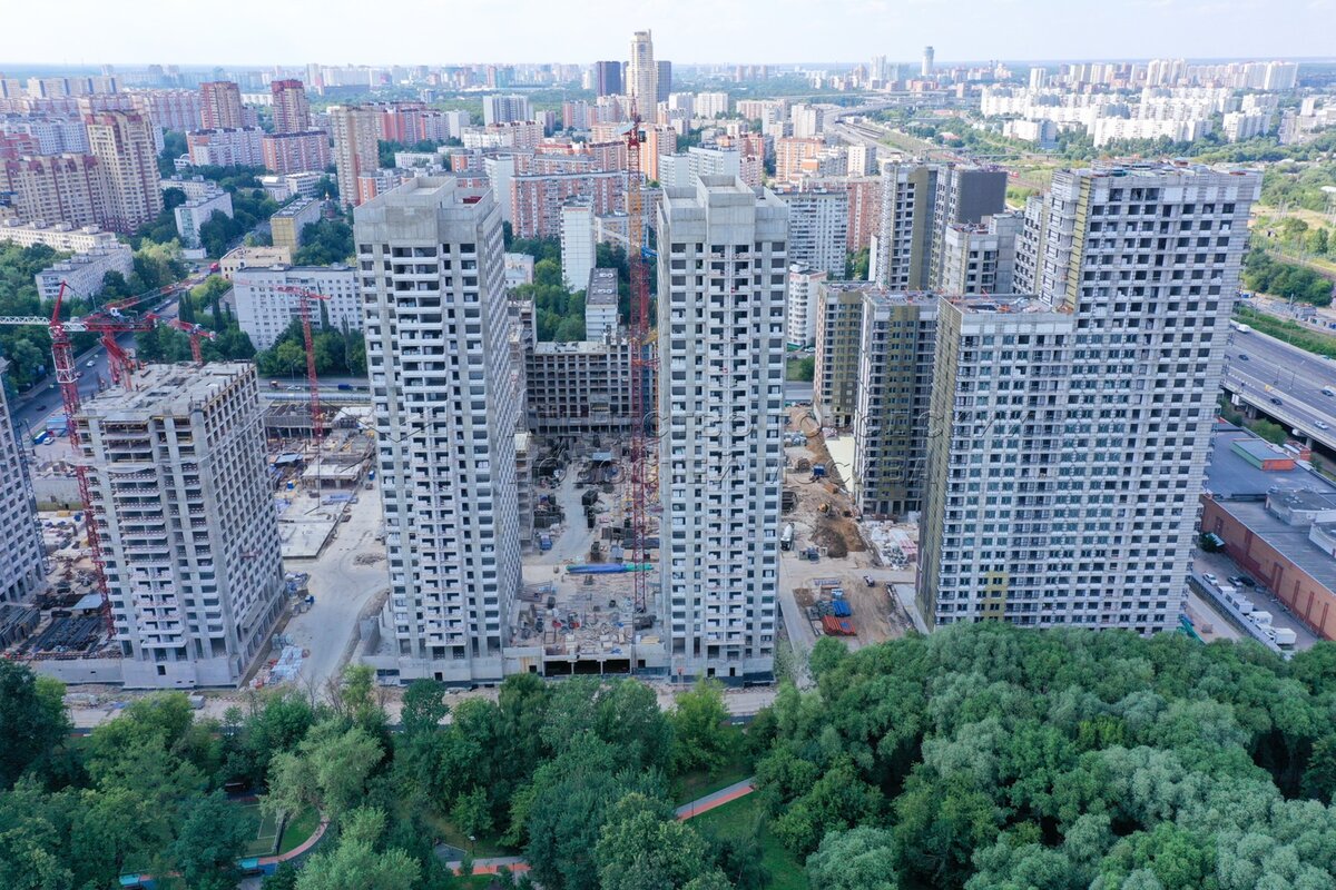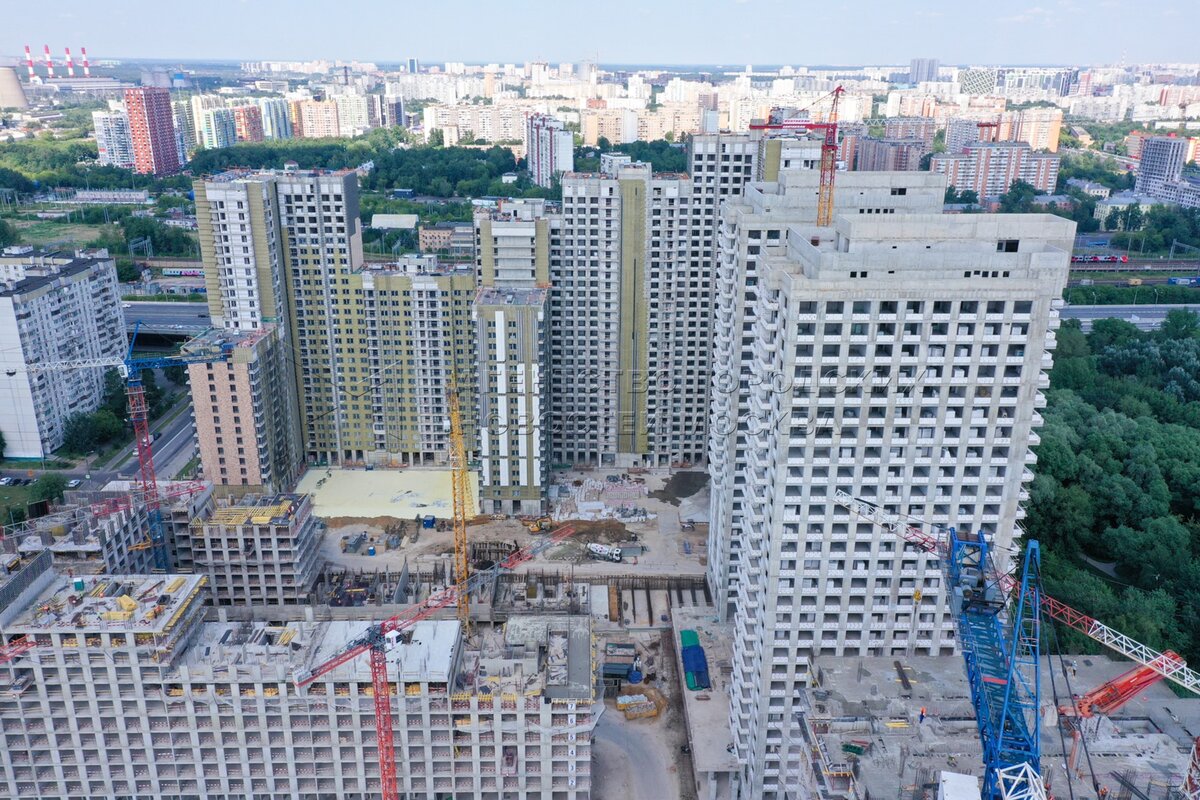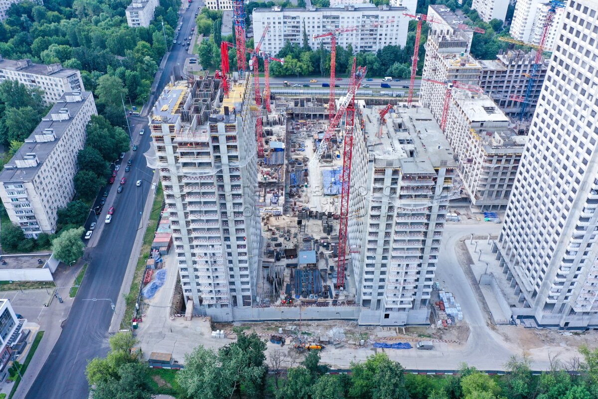 • Заголовок: Вид с квадрокоптера на строительство жилых домов на месте снесенной Ховринской больницы