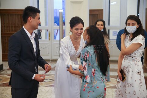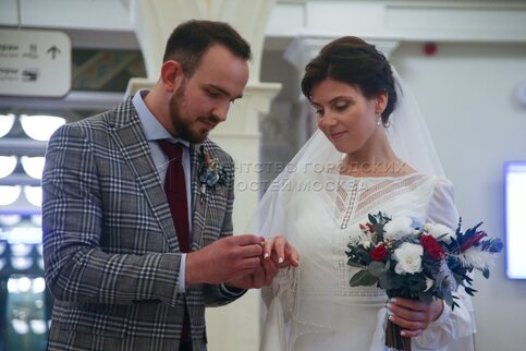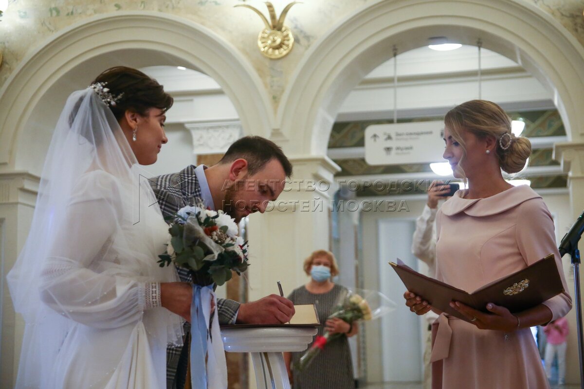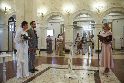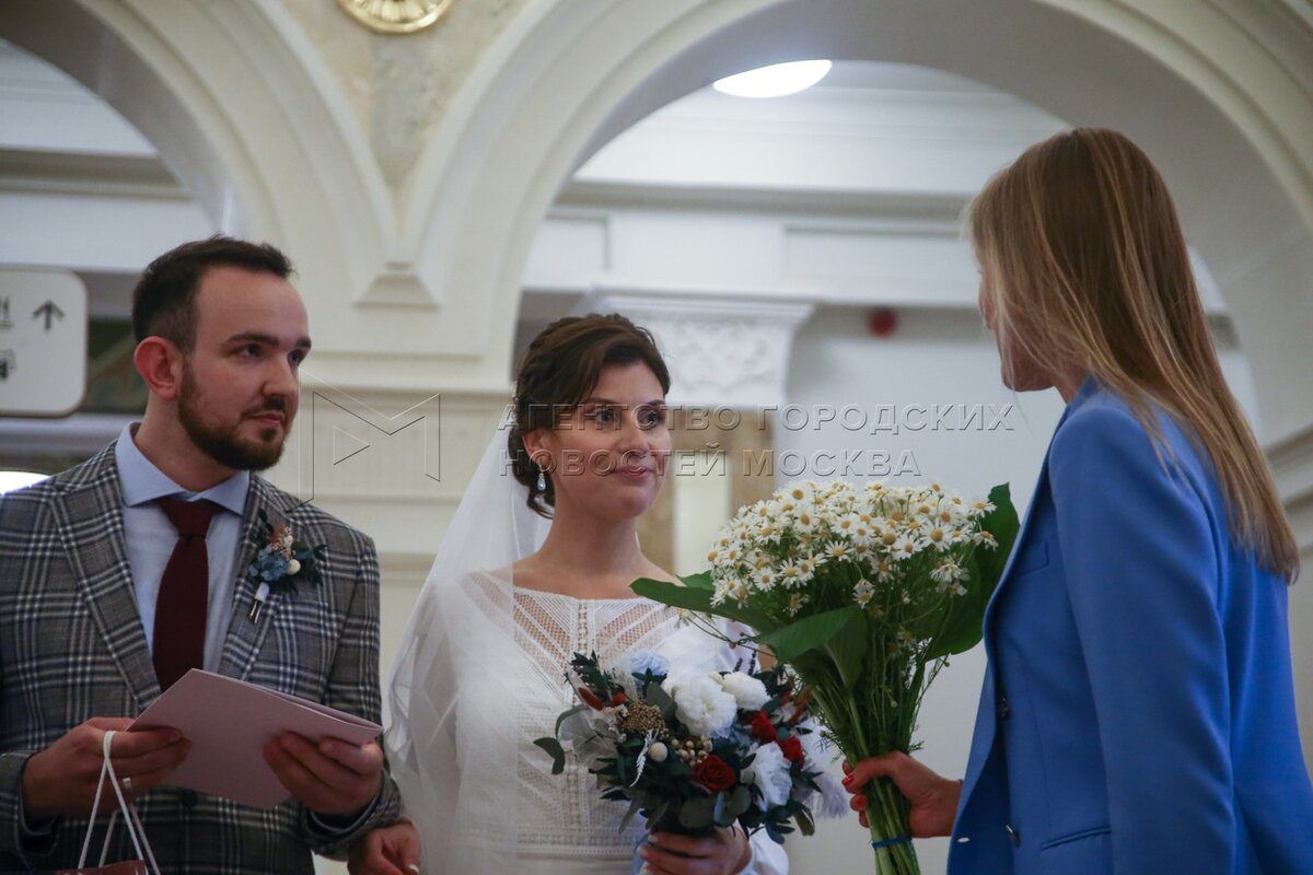 Первая торжественная церемония бракосочетания в Северном речном вокзале в рамках ...