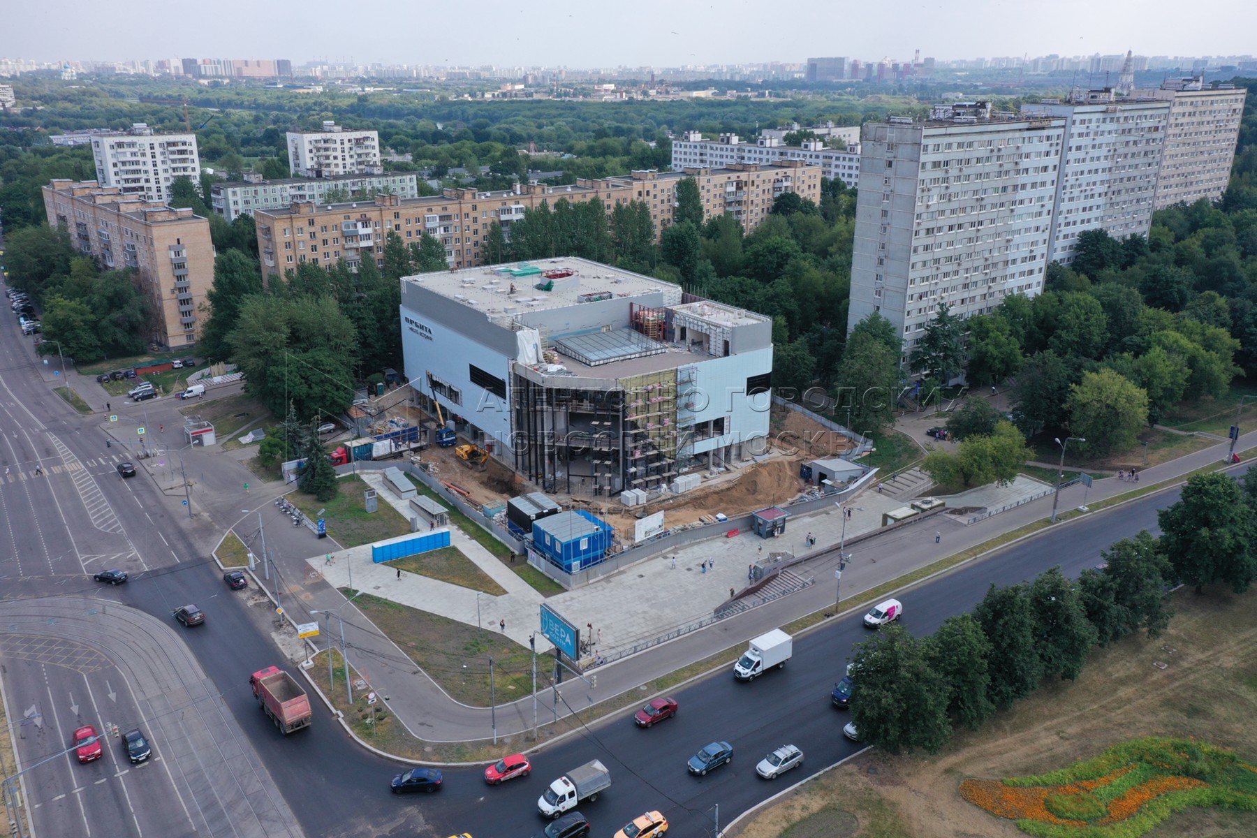 • Заголовок: Вид с квадрокоптера на реконструкцию кинотеатра «Орбита» на юге Москвы