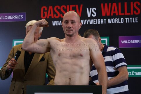 Церемония взвешивания с участием российского боксера Мурата Гассиева накануне пое...