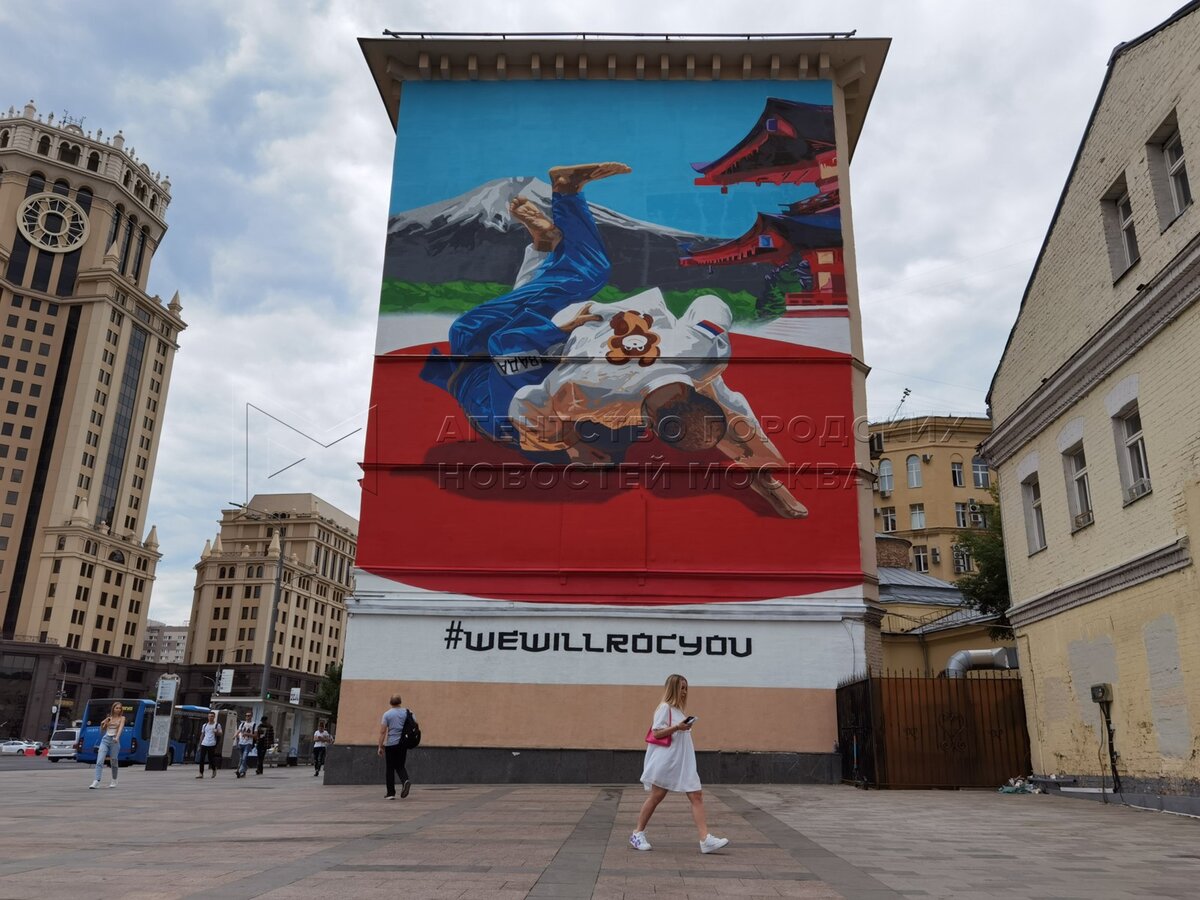 Граффити в поддержку российских спортсменов на Олимпийских играх в Токио на стене...