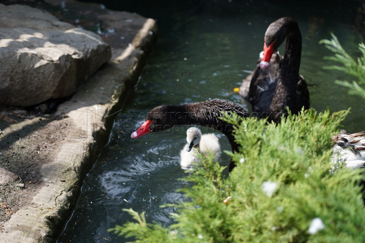 Птенец черных лебедей в вольере Московского зоопарка. Фото: пресс-служба столично...