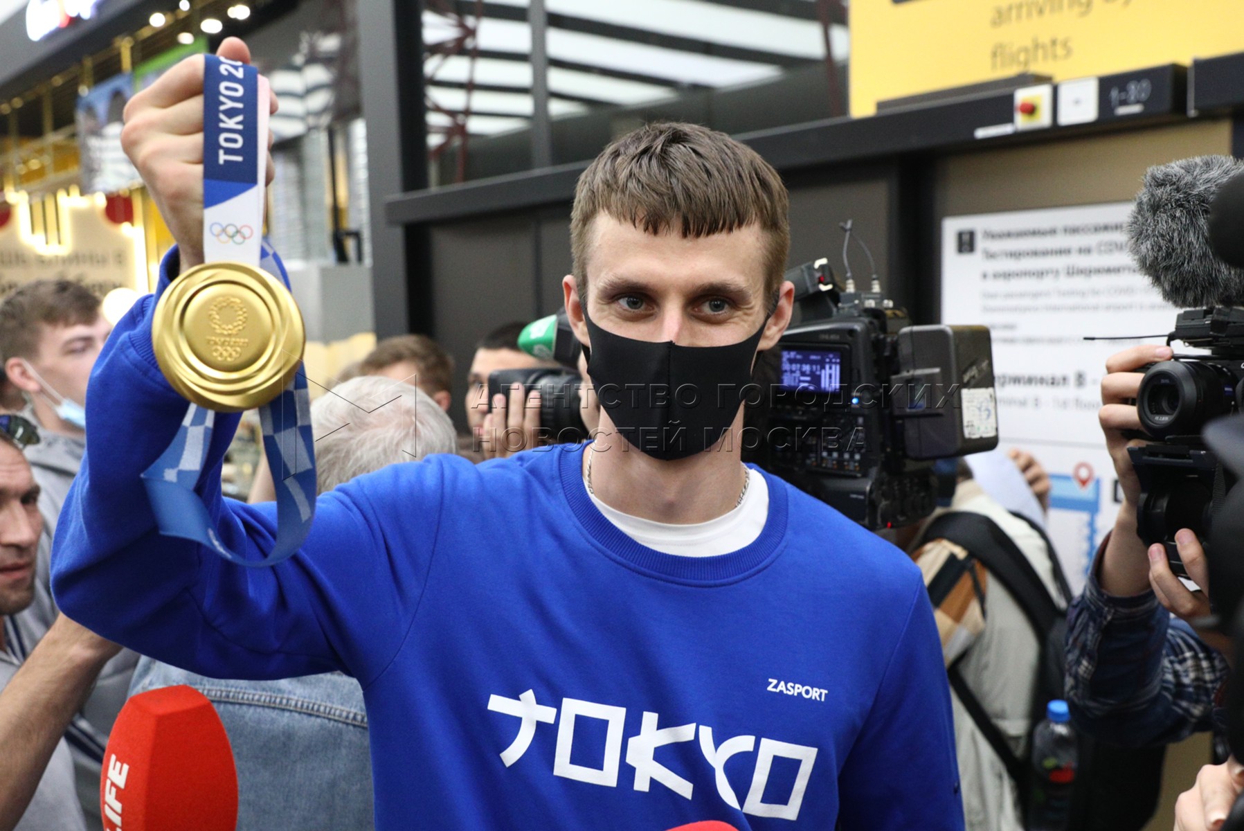 Олимпийский чемпион по тхэквондо Владислав Ларин во время встречи в аэропорту Шер...