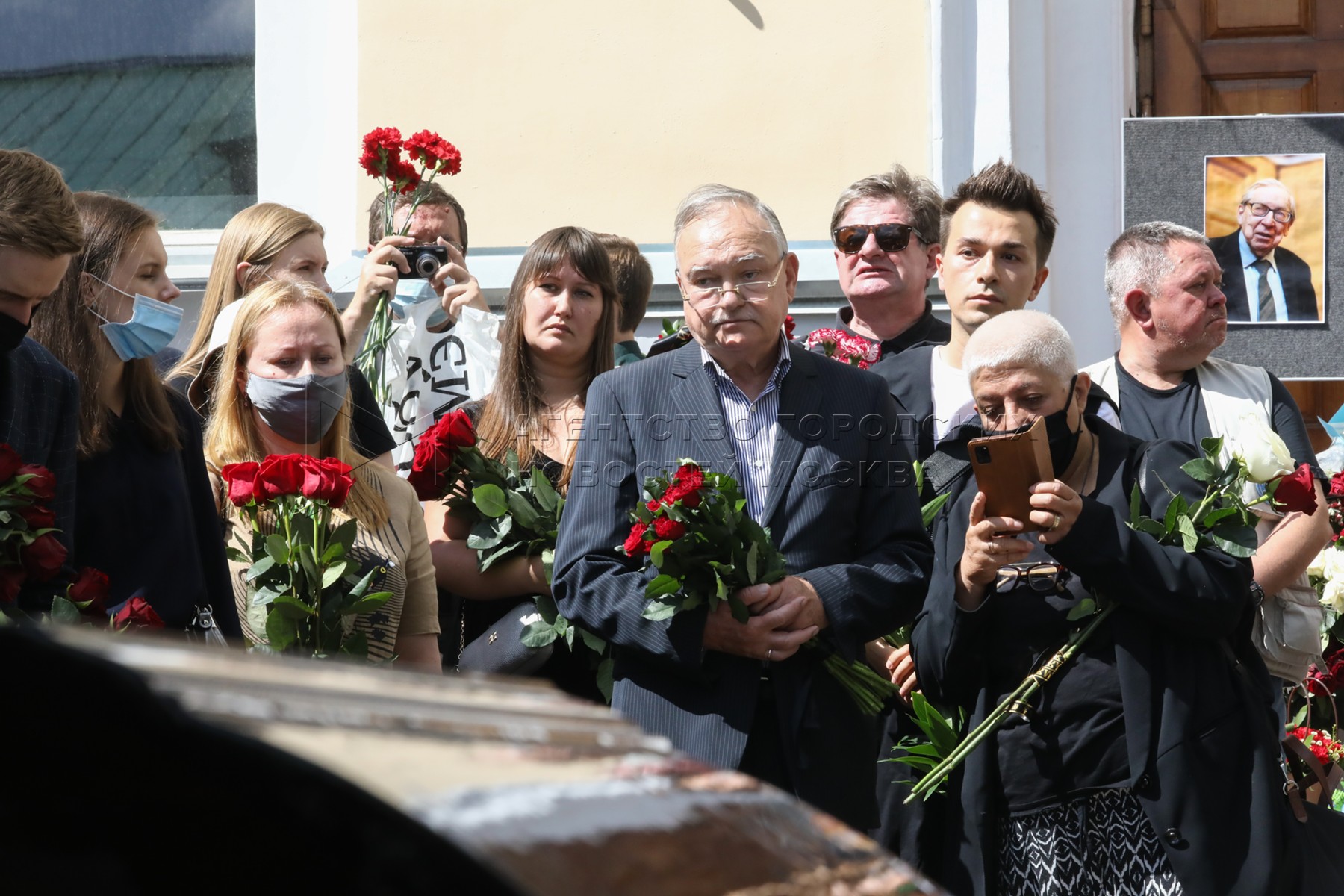 Председатель Союза журналистов России Владимир Соловьев (по центру) во время прощ...