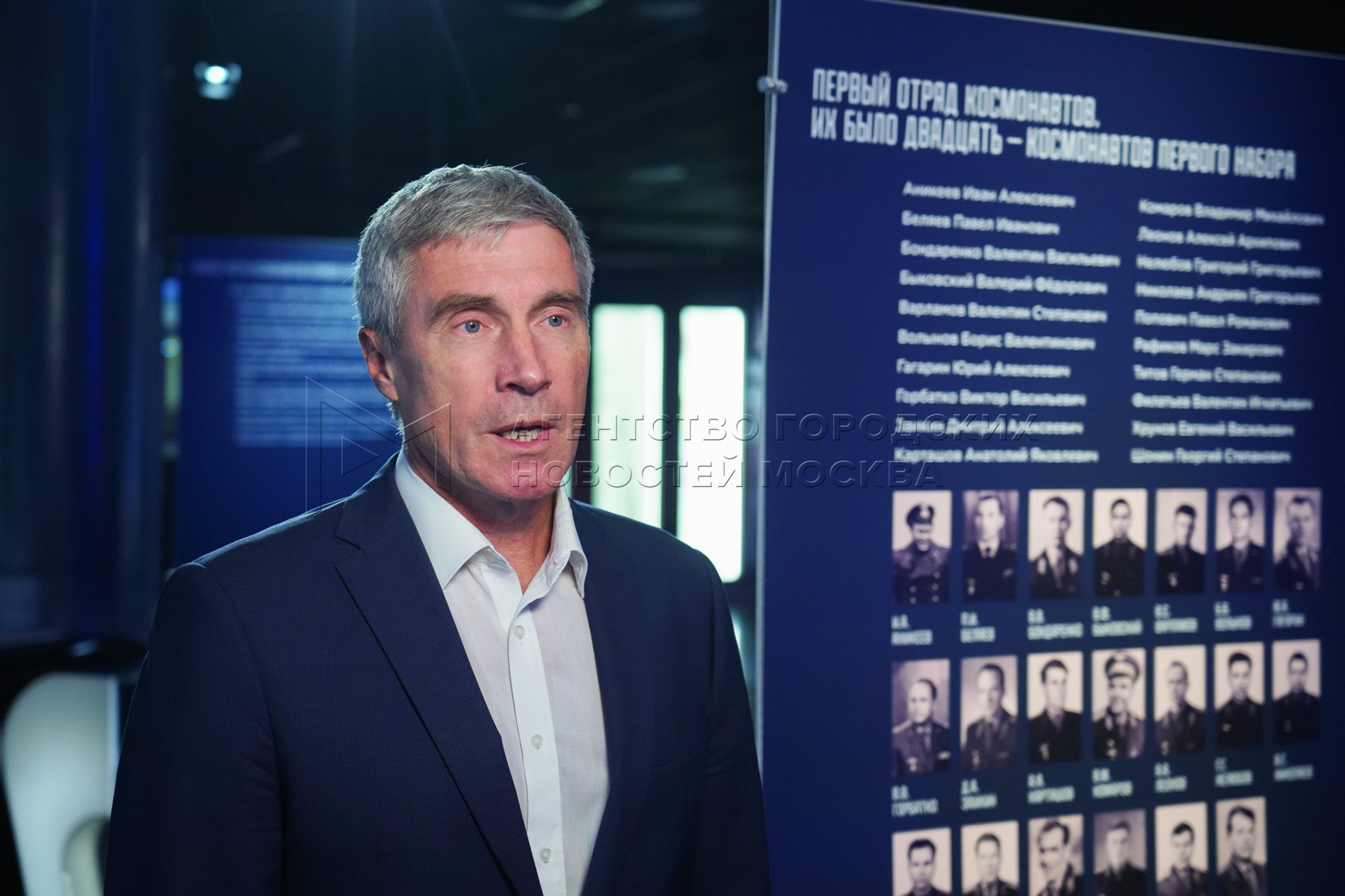 Российский космонавт Сергей Крикалев на открытии выставки «17 космических зорь Ге...