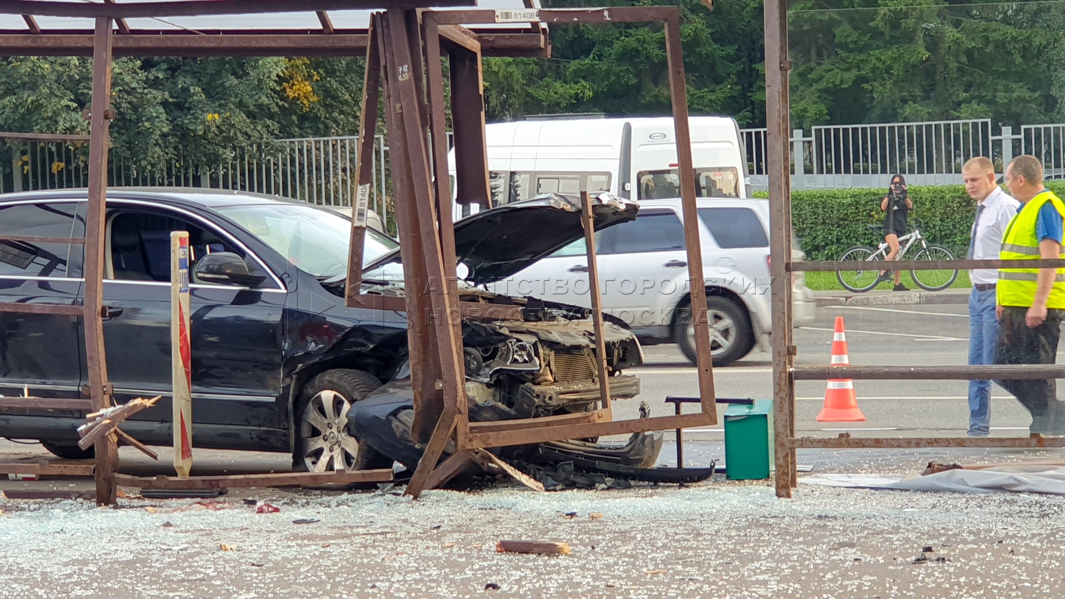 • Заголовок: Последствия наезда автомобиля Skoda на остановку на юго-западе Москвы