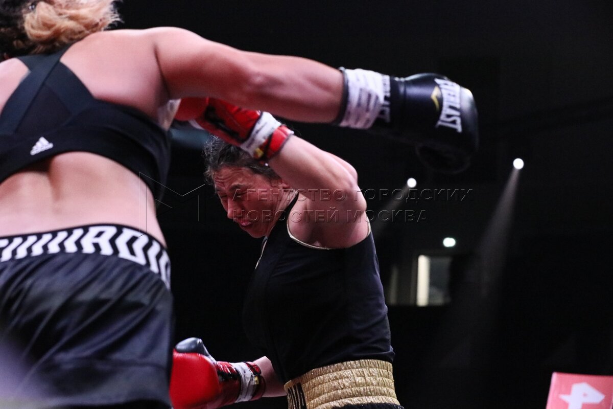 Боксер Луиза Давыдова на турнире в рамках «Бойцовского клуба РЕН ТВ» на волейболь...