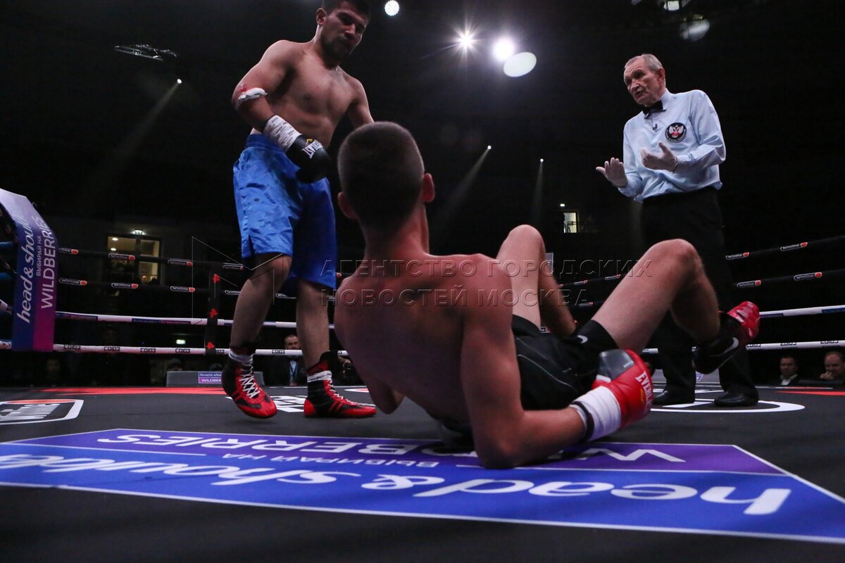 Главный бой вечера между российским боксером-профессионалом Виталием Кудуховым (с...