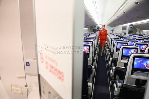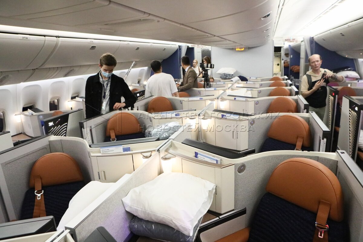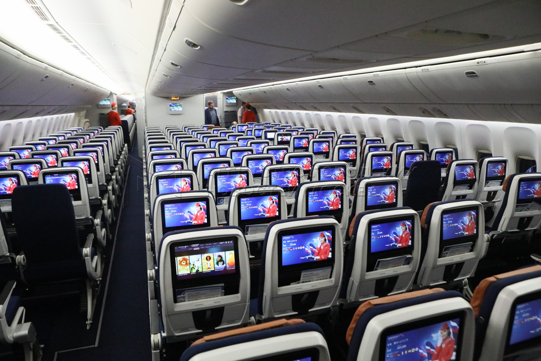 Презентация нового салона Boeing 777 «Аэрофлота» в аэропорту Шереметьево.