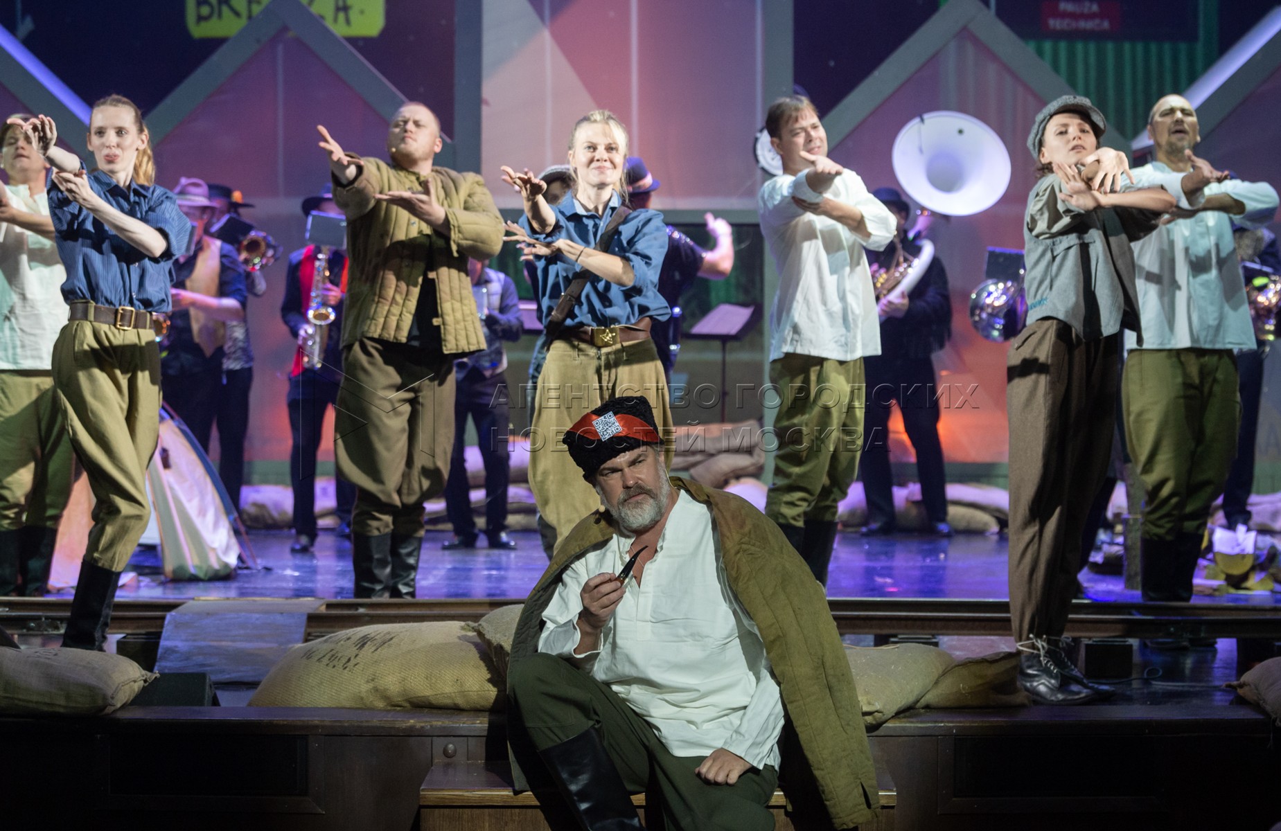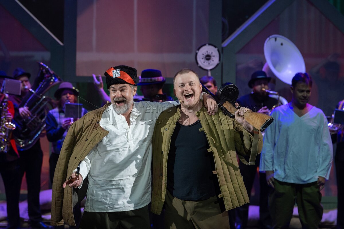 Актер Сергей Вершинин (слева) во время сбора труппы Московского губернского театр...
