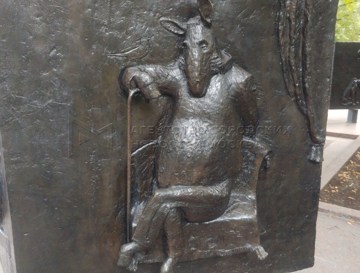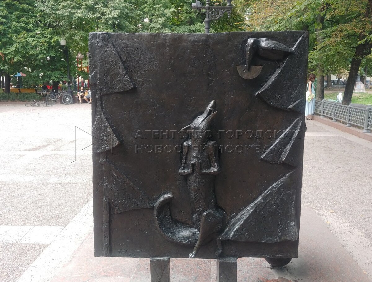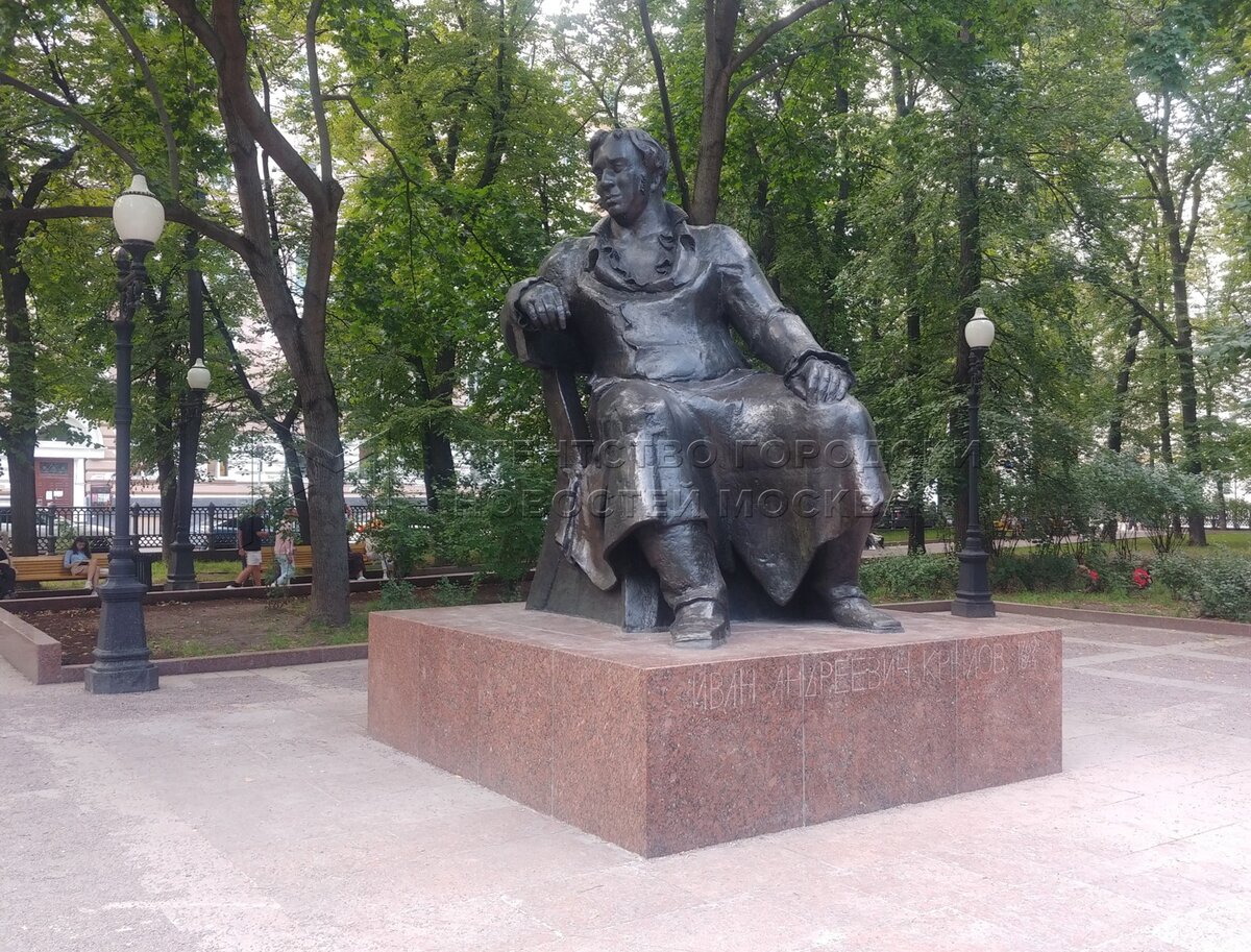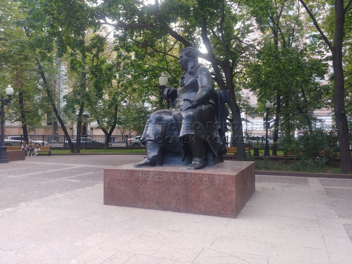 Скульптурный ансамбль памятника поэту и баснописцу Ивану Крылову на Патриарших пр...