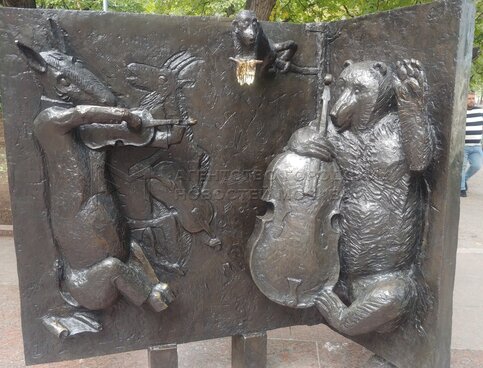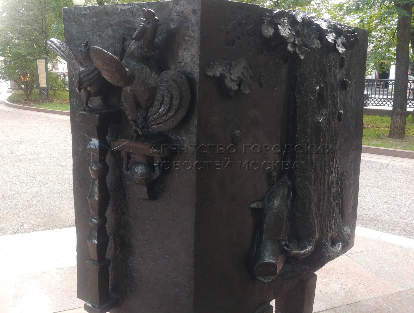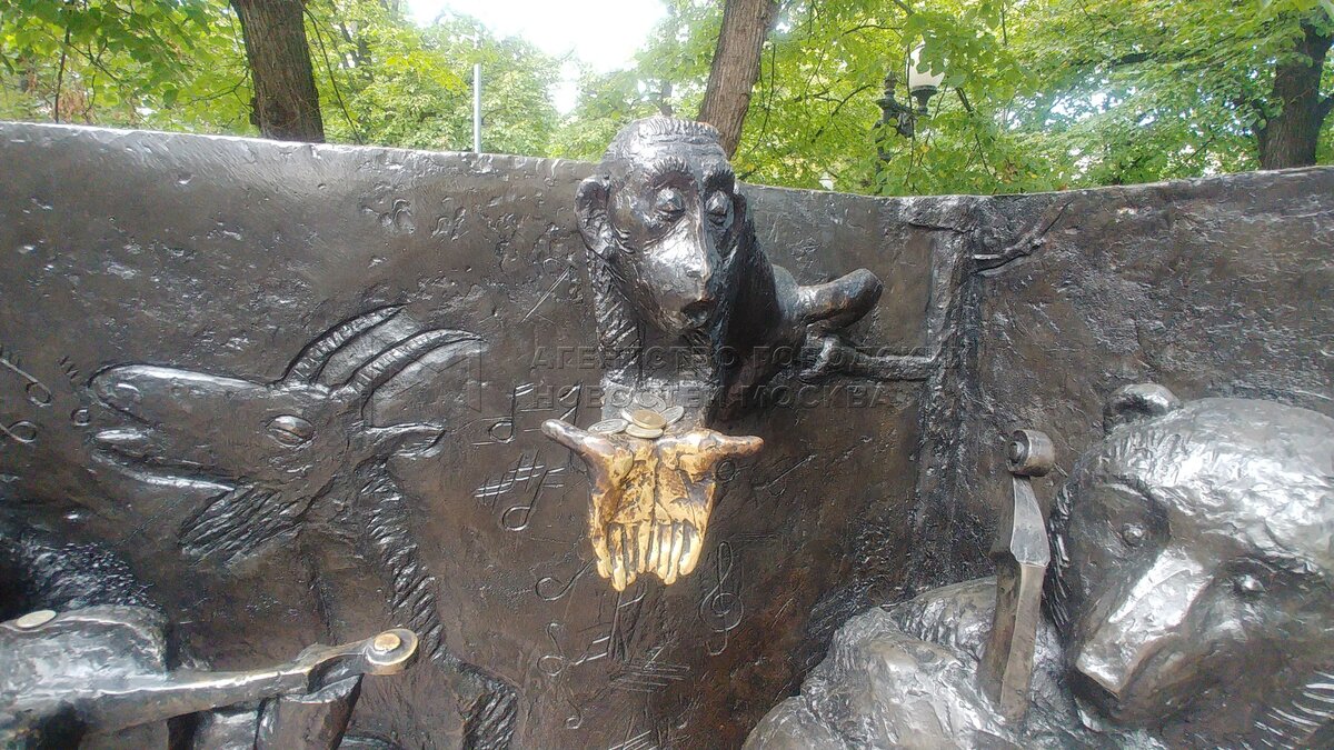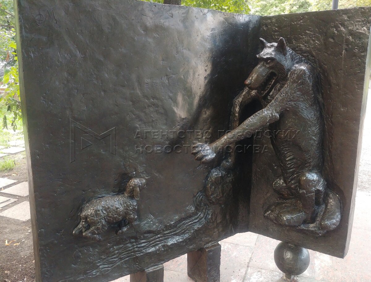 Скульптурный ансамбль памятника поэту и баснописцу Ивану Крылову на Патриарших пр...