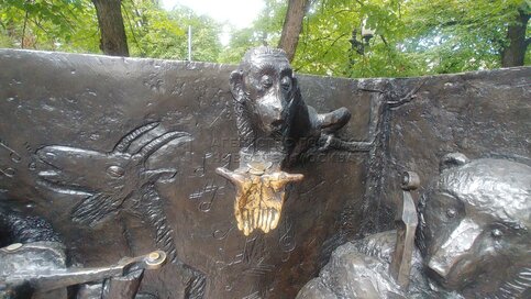 Скульптурный ансамбль памятника поэту и баснописцу Ивану Крылову на Патриарших прудах после реставрации.