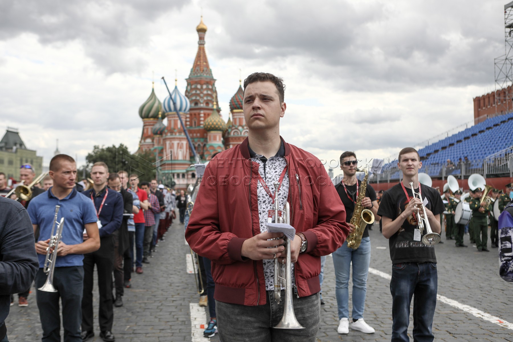 Репетиции участников международного военно-музыкального фестиваля «Спасская башня...