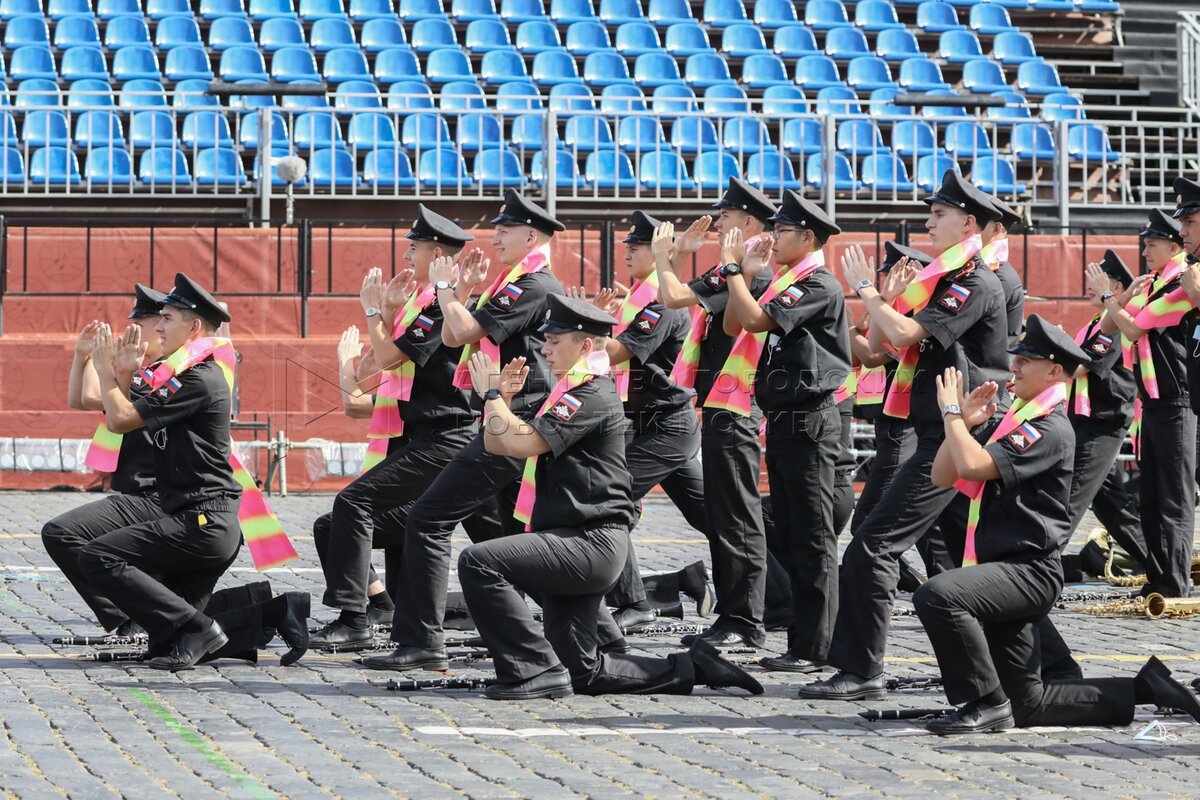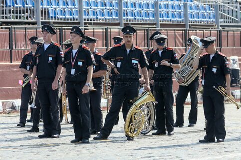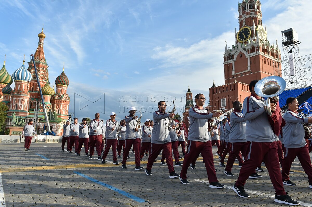 • Заголовок: Репетиции участников международного военно-музыкального фестиваля «Спасская башня» на Красной площади