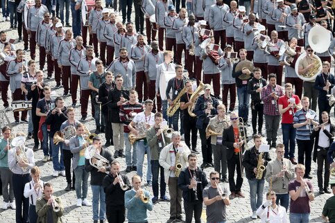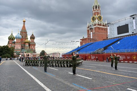 Репетиции участников международного военно-музыкального фестиваля «Спасская башня...
