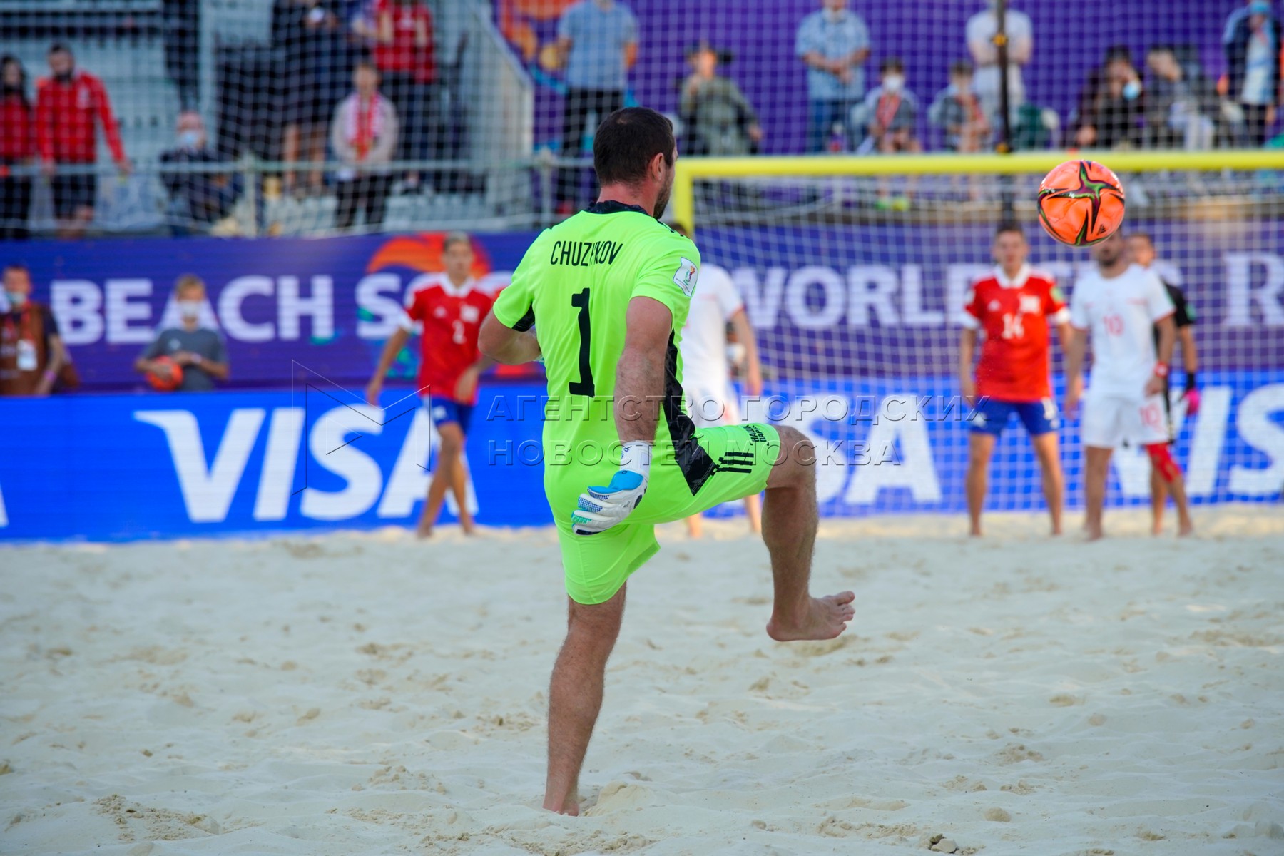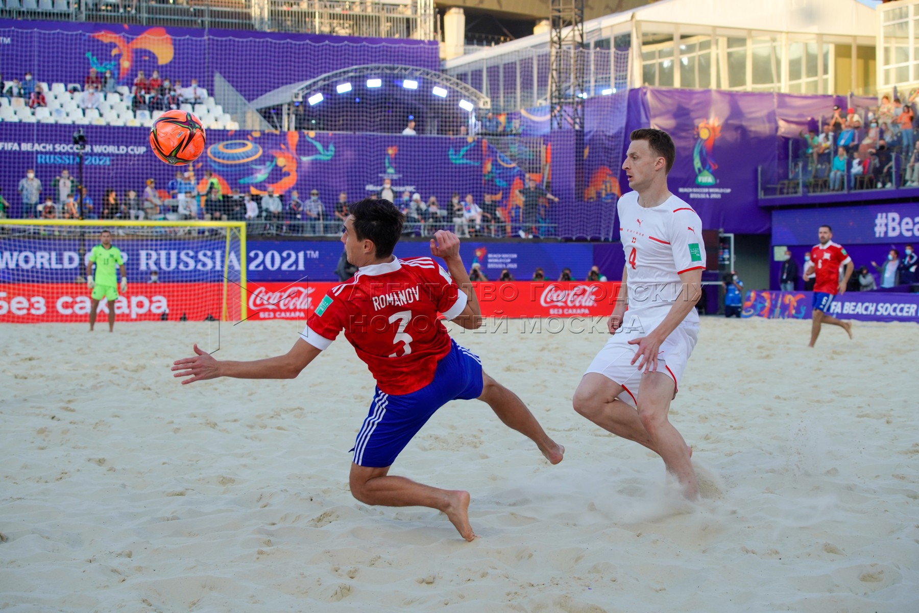 - Заголовок: Чемпионат мира по пляжному футболу 2021 между сборными России и Швейцарии в спорткомплексе «Лужники»