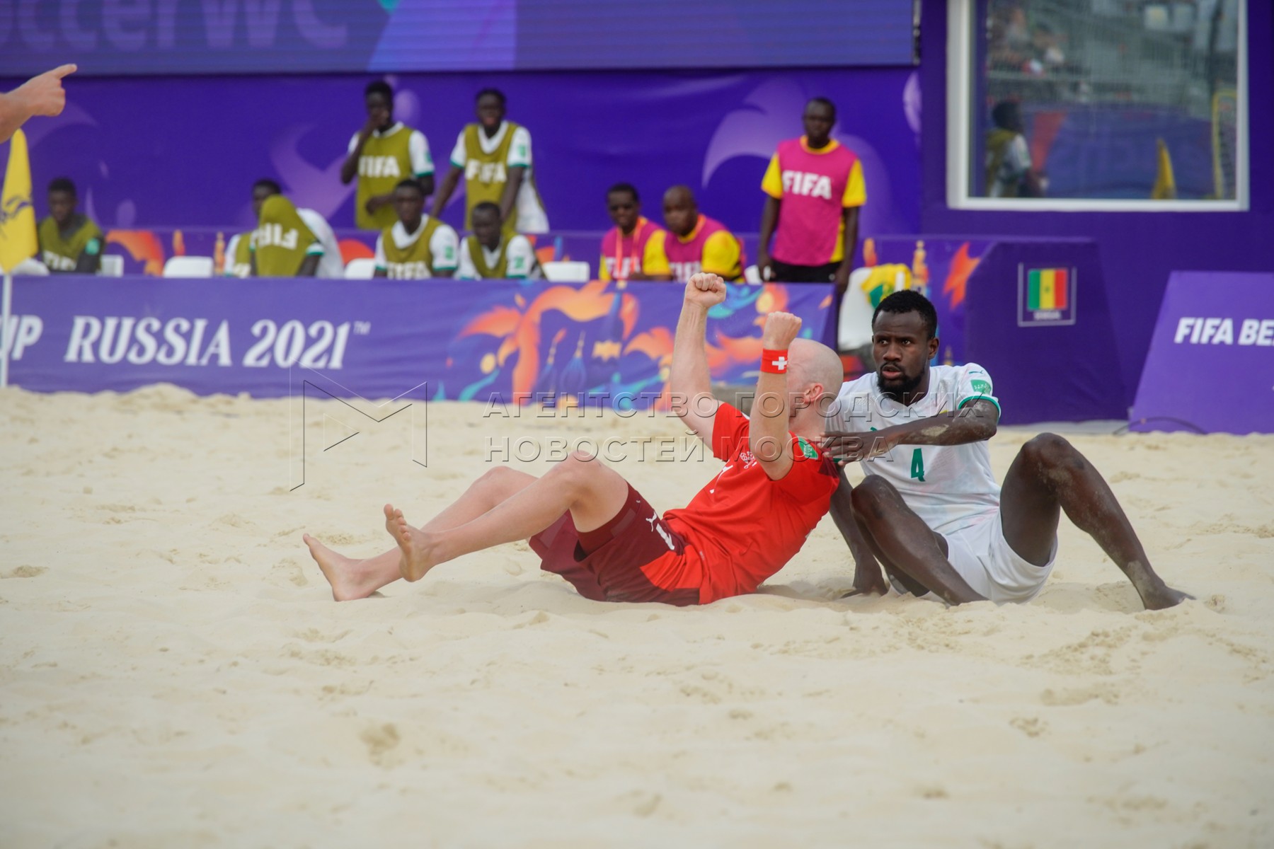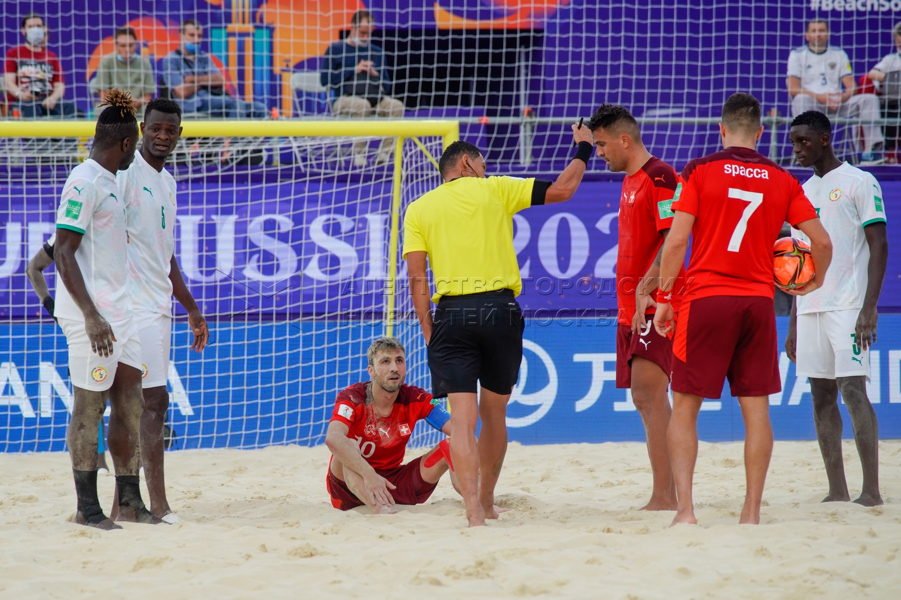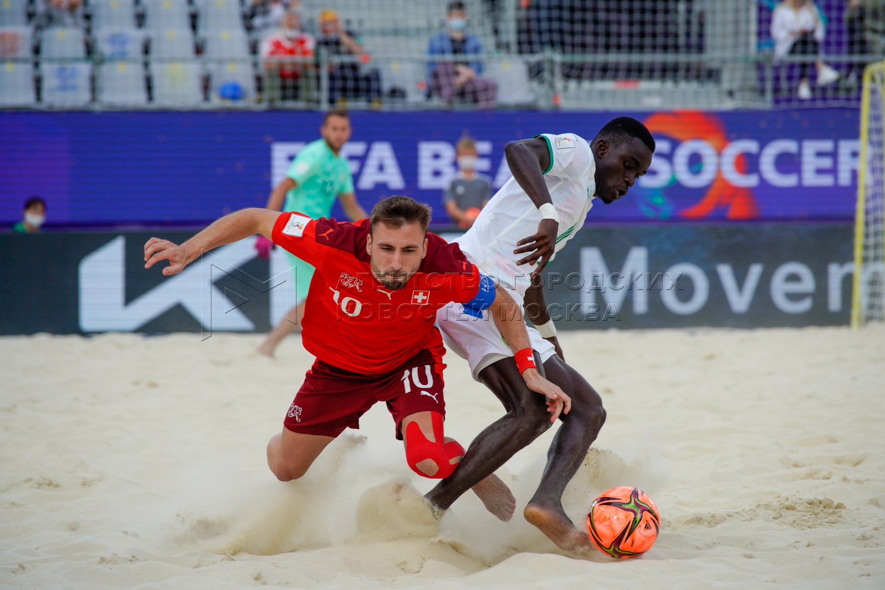 - Описание: Матч за бронзовые медали ЧМ-2021 по пляжному футболу между сборными Швейцарии и Сенегала в СК «Лужники»