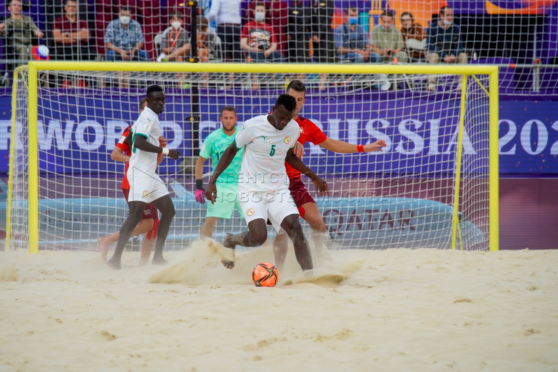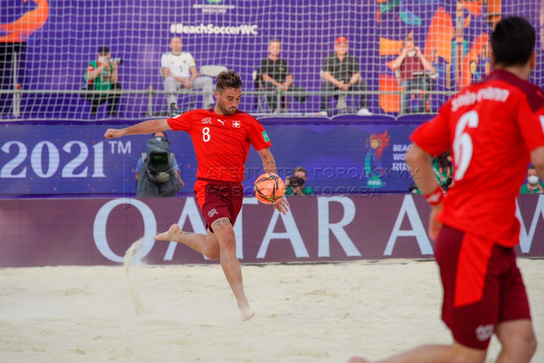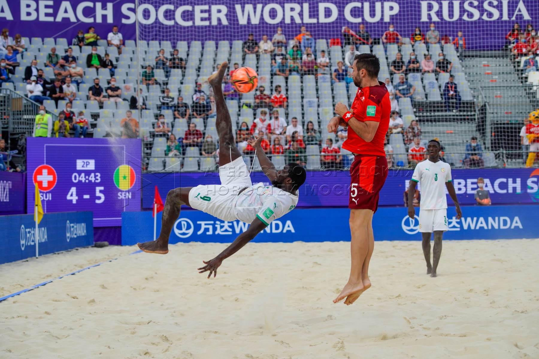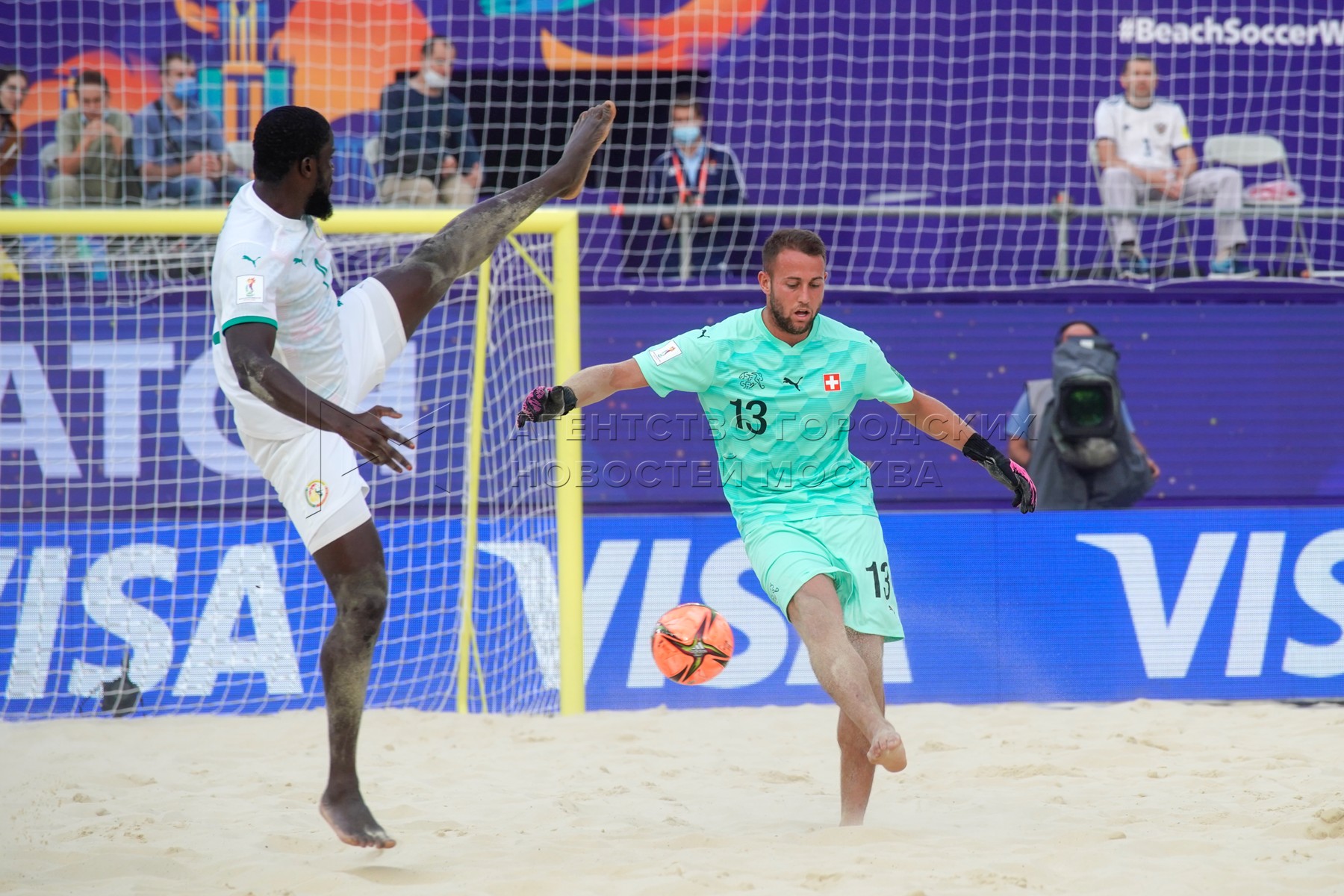 - Описание: Матч за бронзовые медали ЧМ-2021 по пляжному футболу между сборными Швейцарии и Сенегала в СК «Лужники»