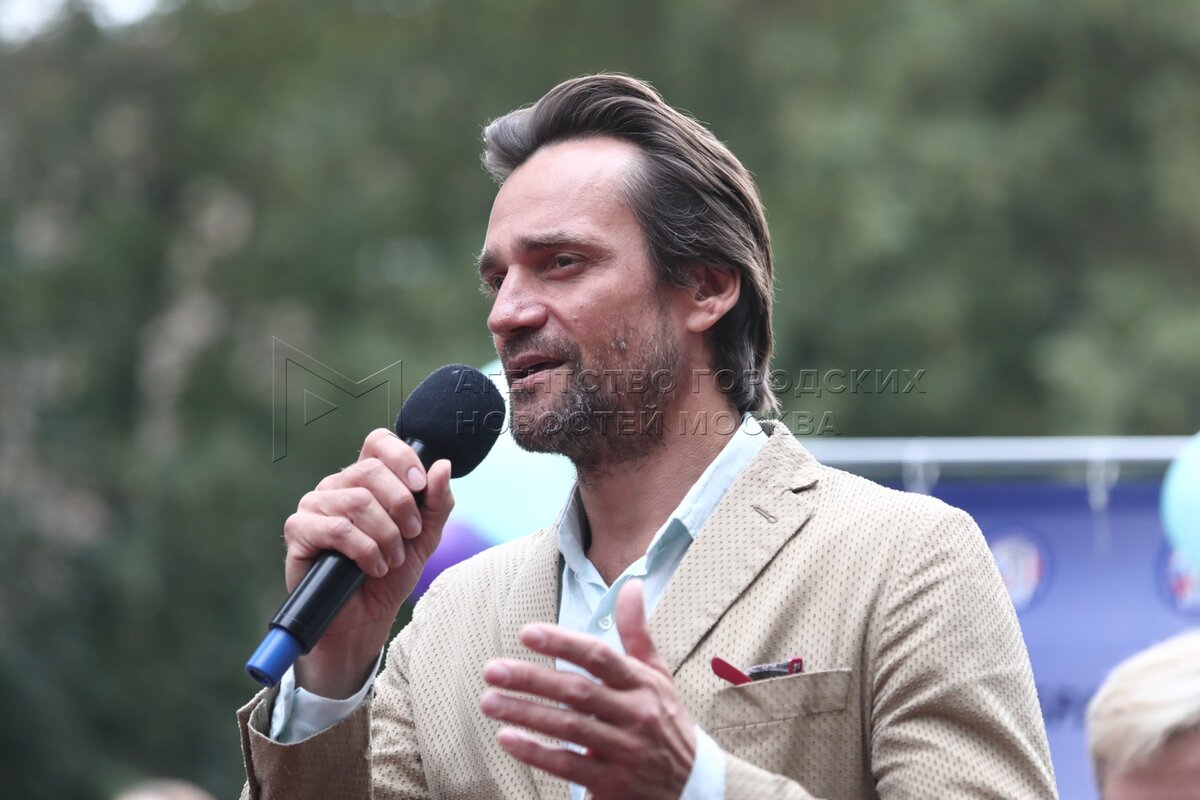Актер Дмитрий Миллер во время Дня знаний в московской школе №1251