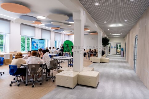 Открытие после ремонта здания школы «Дмитровский» на Карельском бульваре в День з...