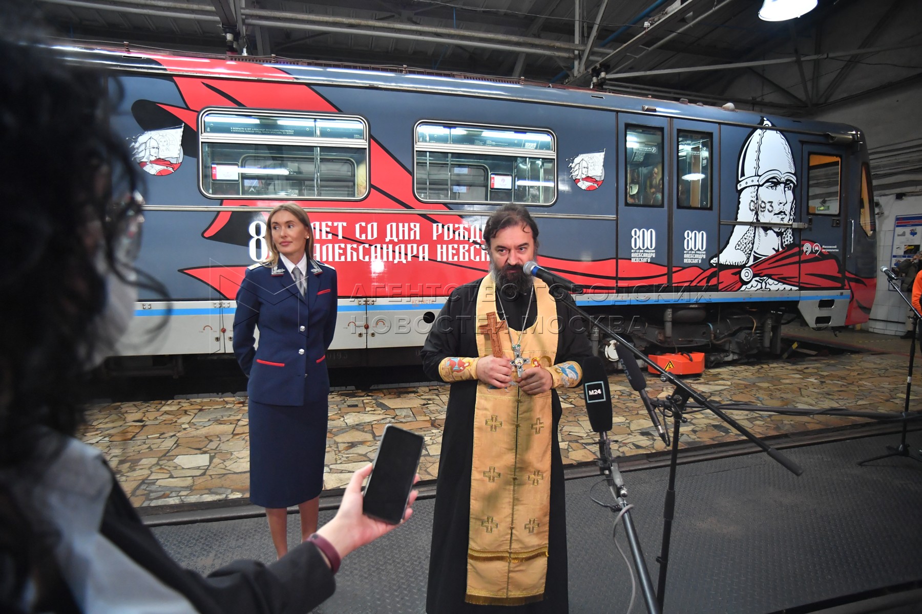 Запуск в электродепо «Измайлово» тематического поезда метрополитена к 800-летию со дня рождения князя Александра Невского.