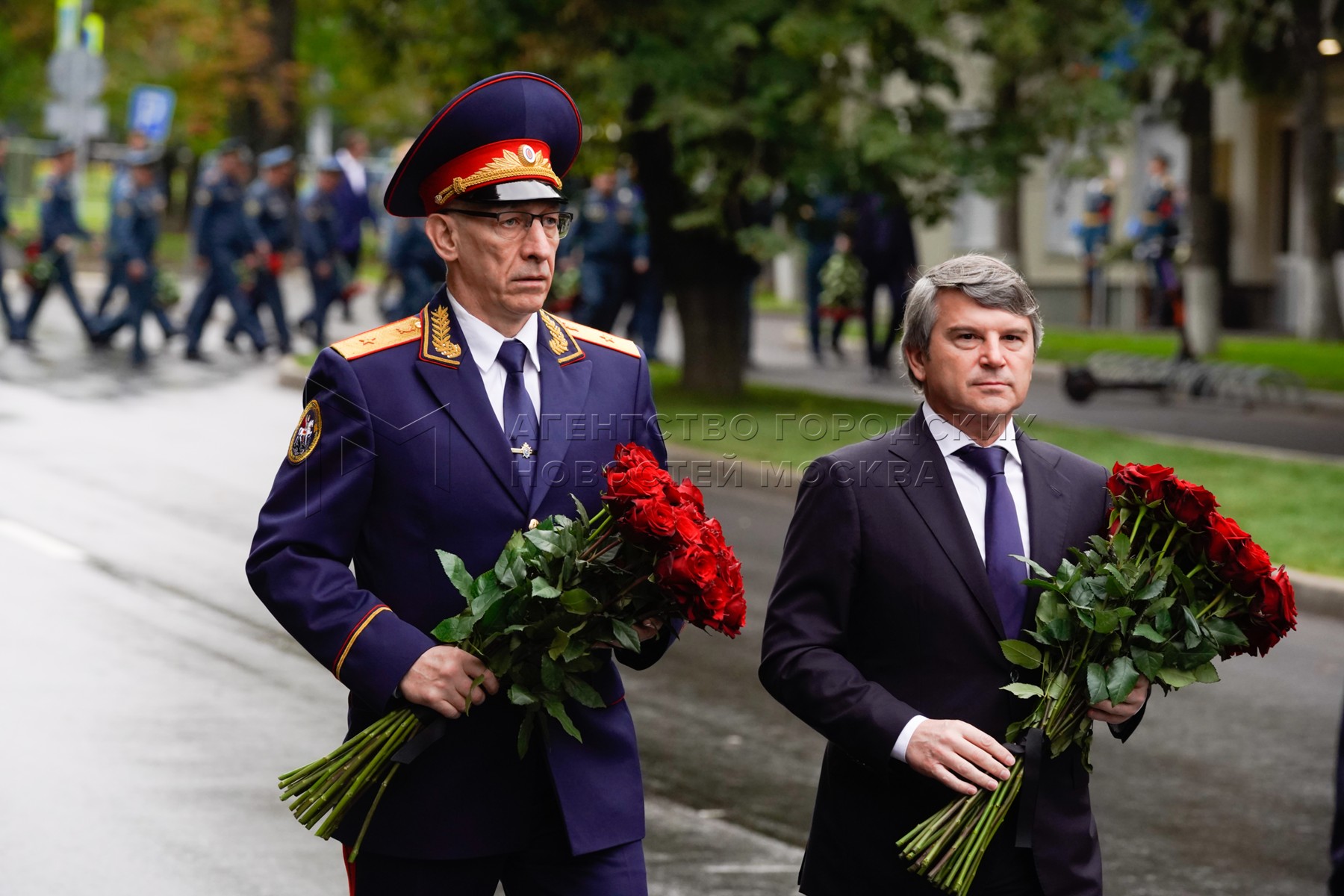 Церемония прощания с главой МЧС РФ Евгением Зиничевым в Национальном центре управ...