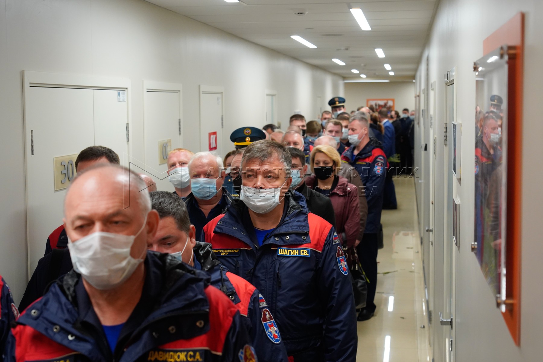 Начальник Академии гражданской защиты МЧС России Виктор Панченков (по центру) и н...