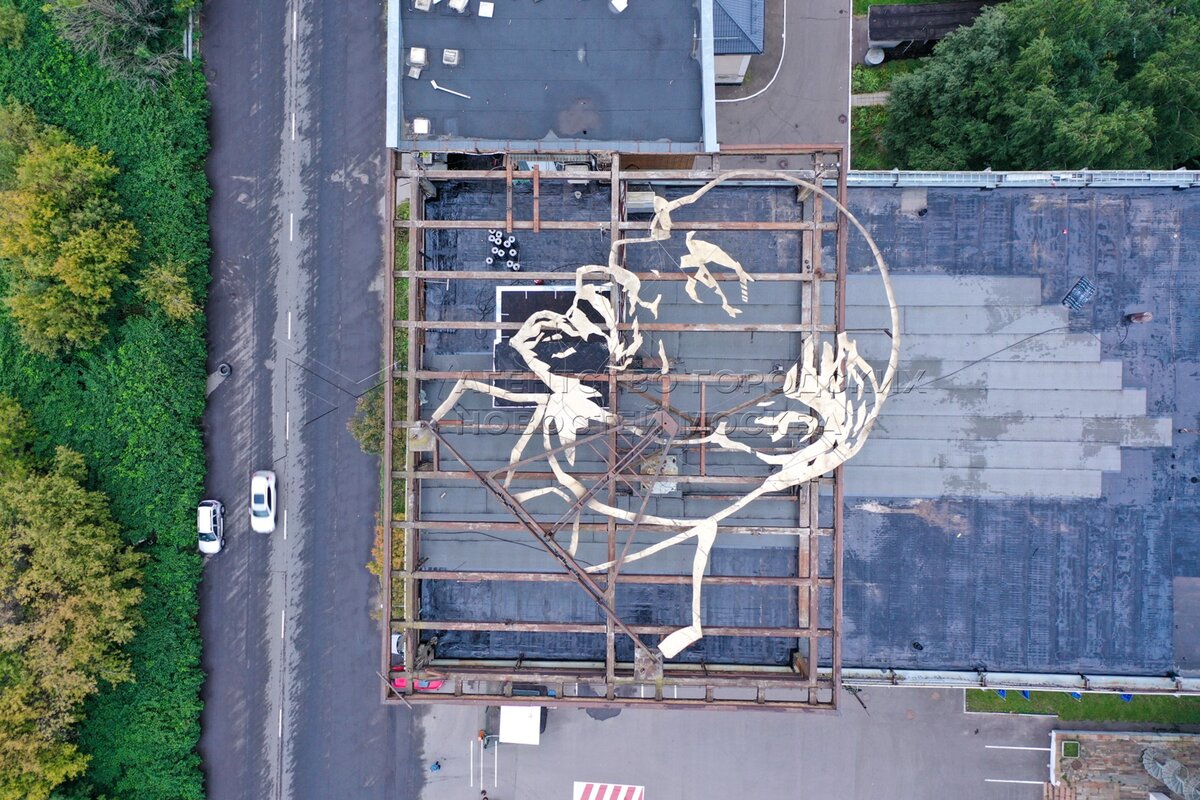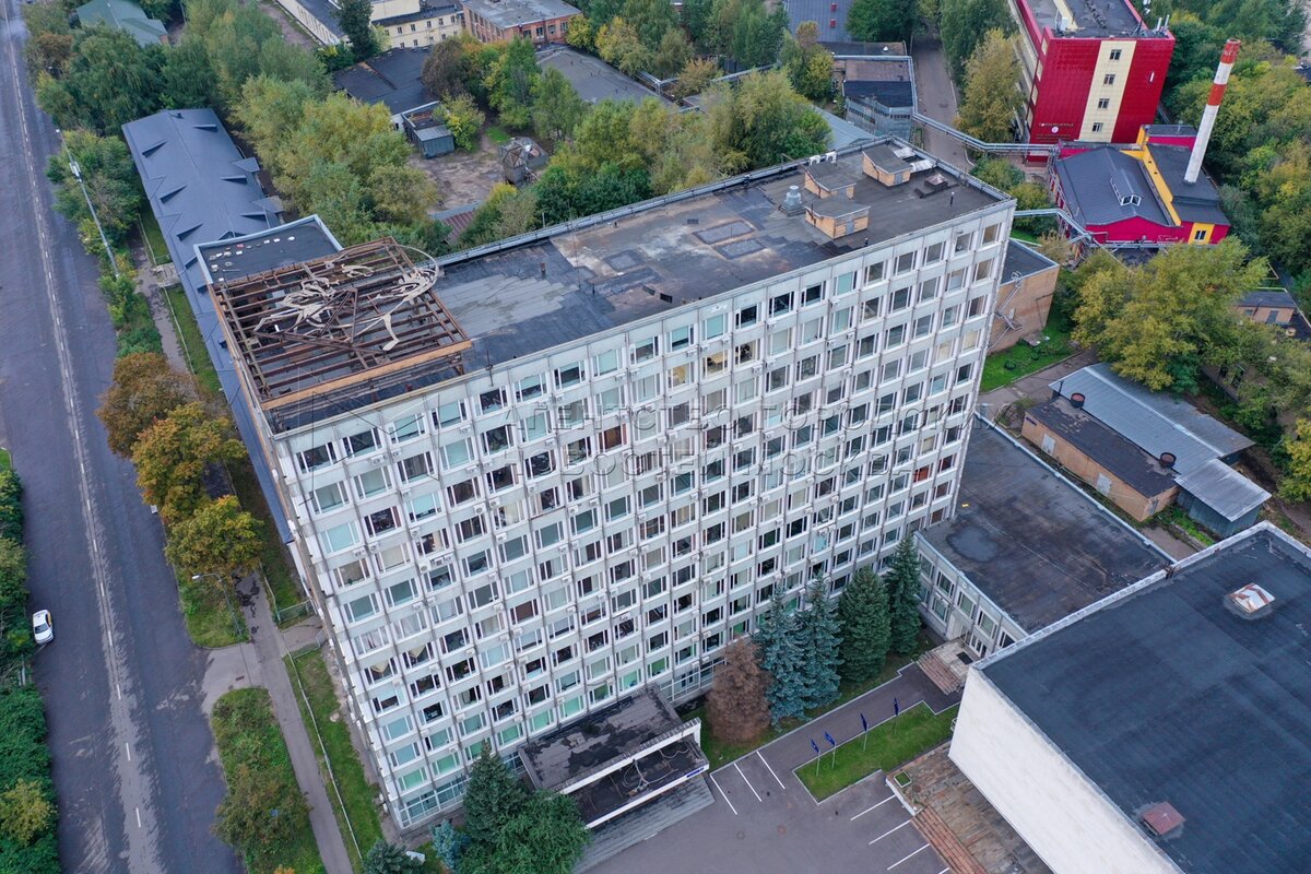 Вид с квадрокоптера на портрет Ленина на крыше здания «НИКИМТ-Атомстрой» на Алтуфьевском шоссе