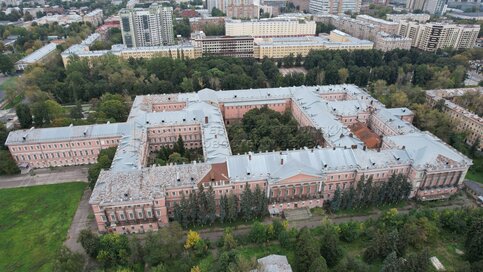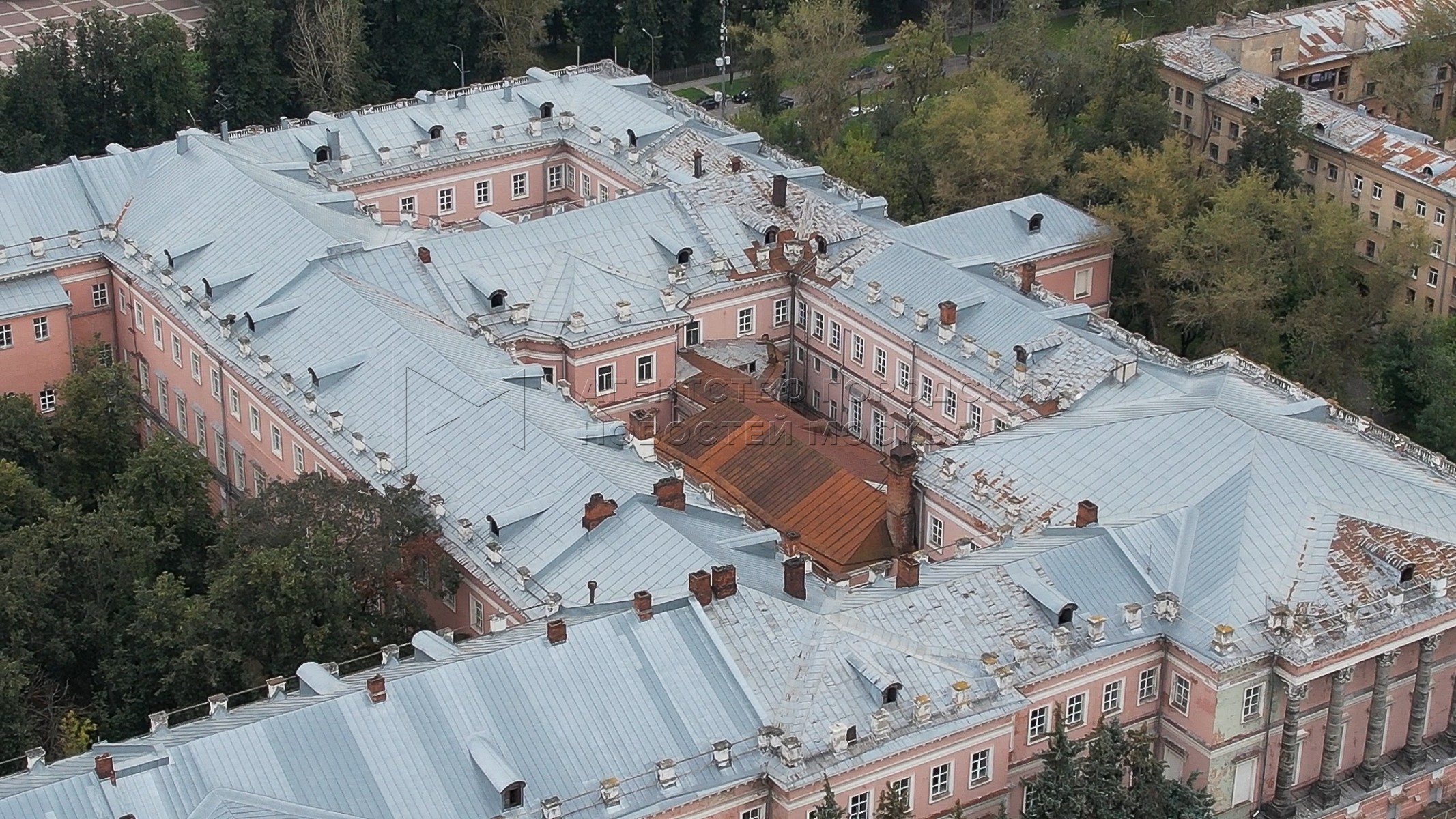 Вид с квадрокоптера на Екатерининский дворец и Лефортовский парк на юго-востоке Москвы.